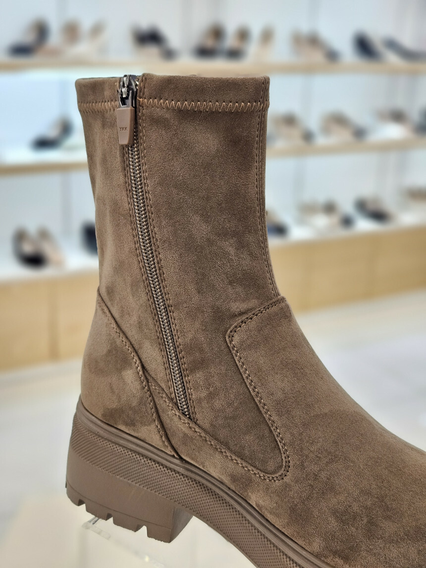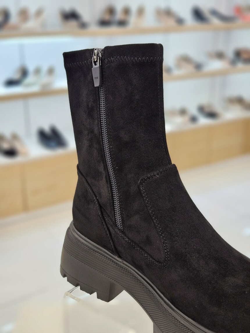 여성스러워면서 캐주얼 느낌이 물씬 나는 여성 스판 앵클 부츠