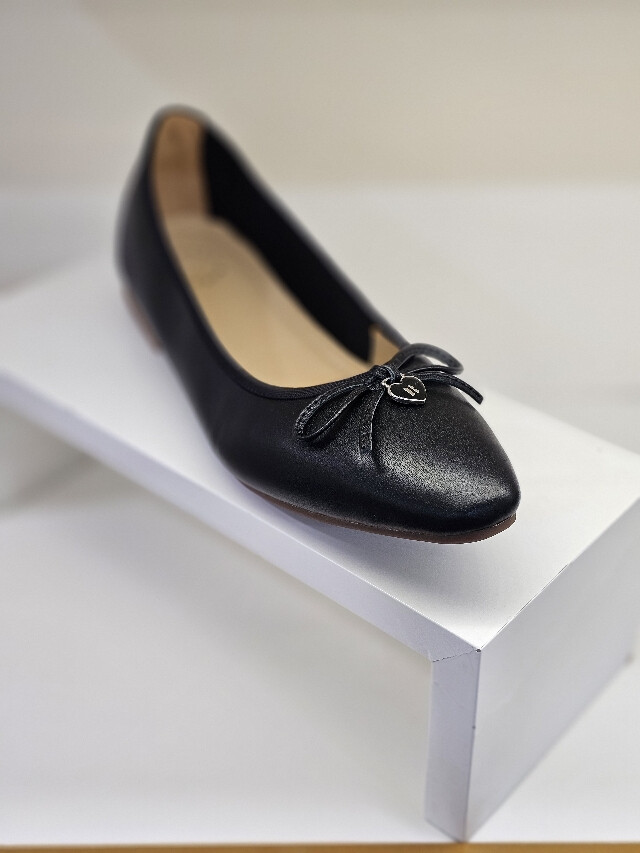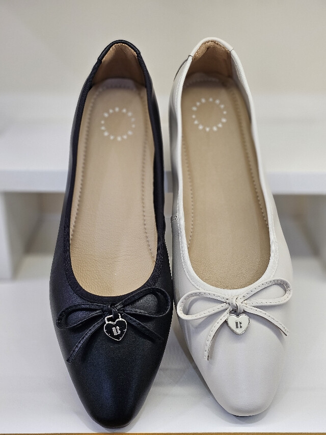 리본장식에 하트 포인트인 양가죽 소재 2.5센치 플렛