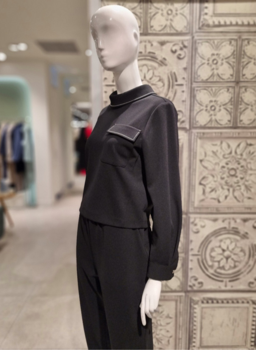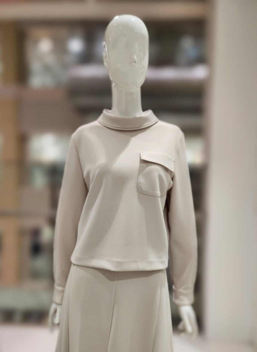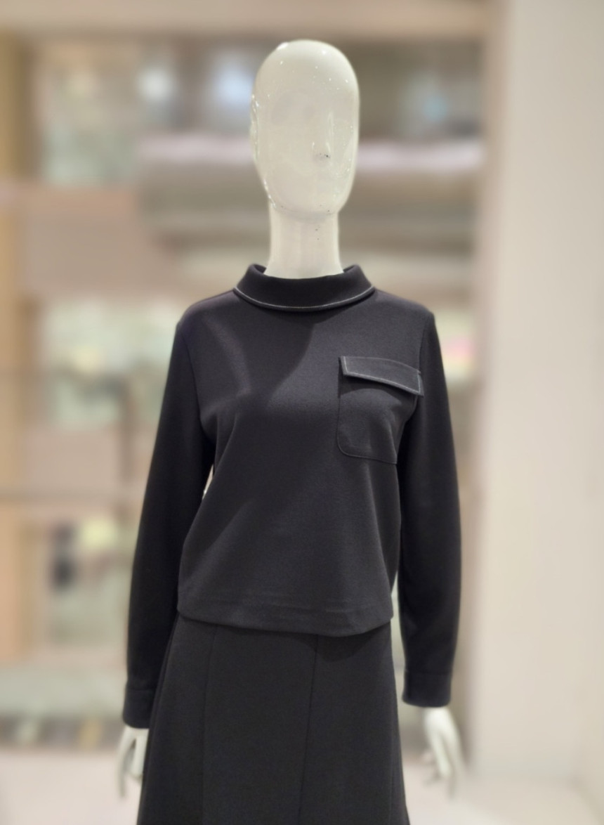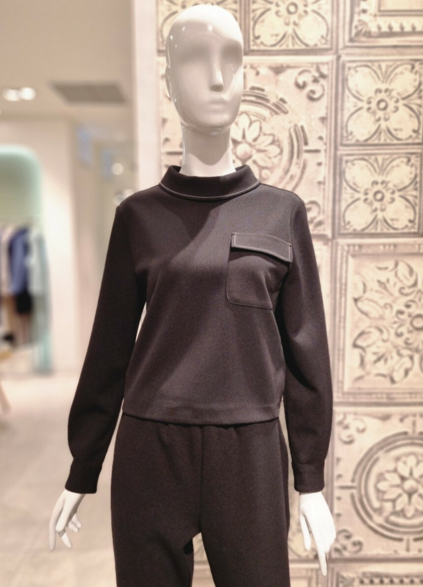 여성스런 터들넥에 스티치가 포인트인 신축성있는 블라우스입니다.