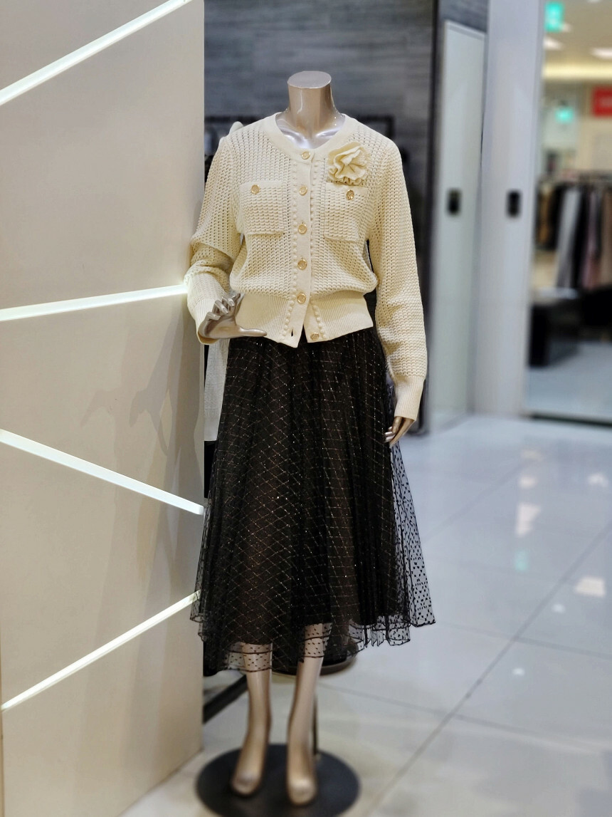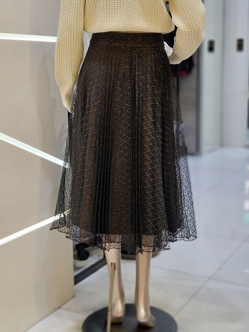 플리츠 주름이 밋밋함 없는 실루엣을 연출하며