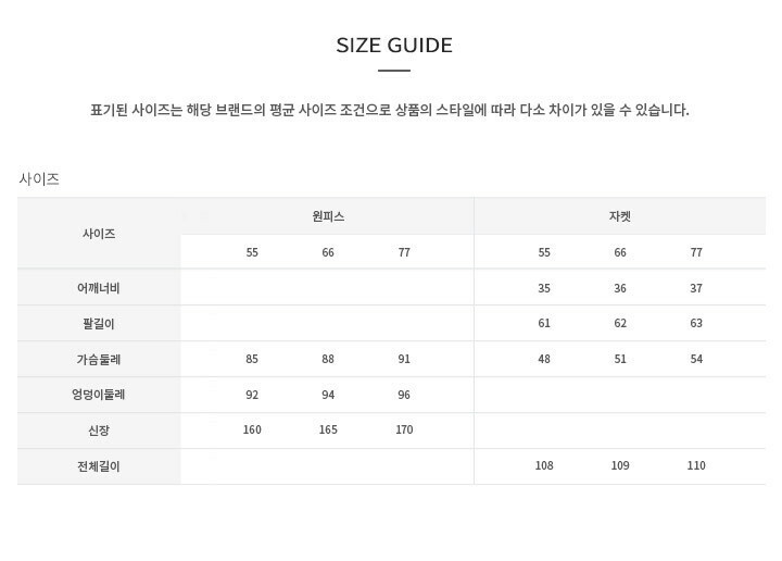 ※ 사이즈는 원단 측정 방법에 따라 2-3cm 오차 가능성이 있습니다.