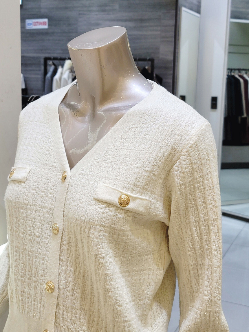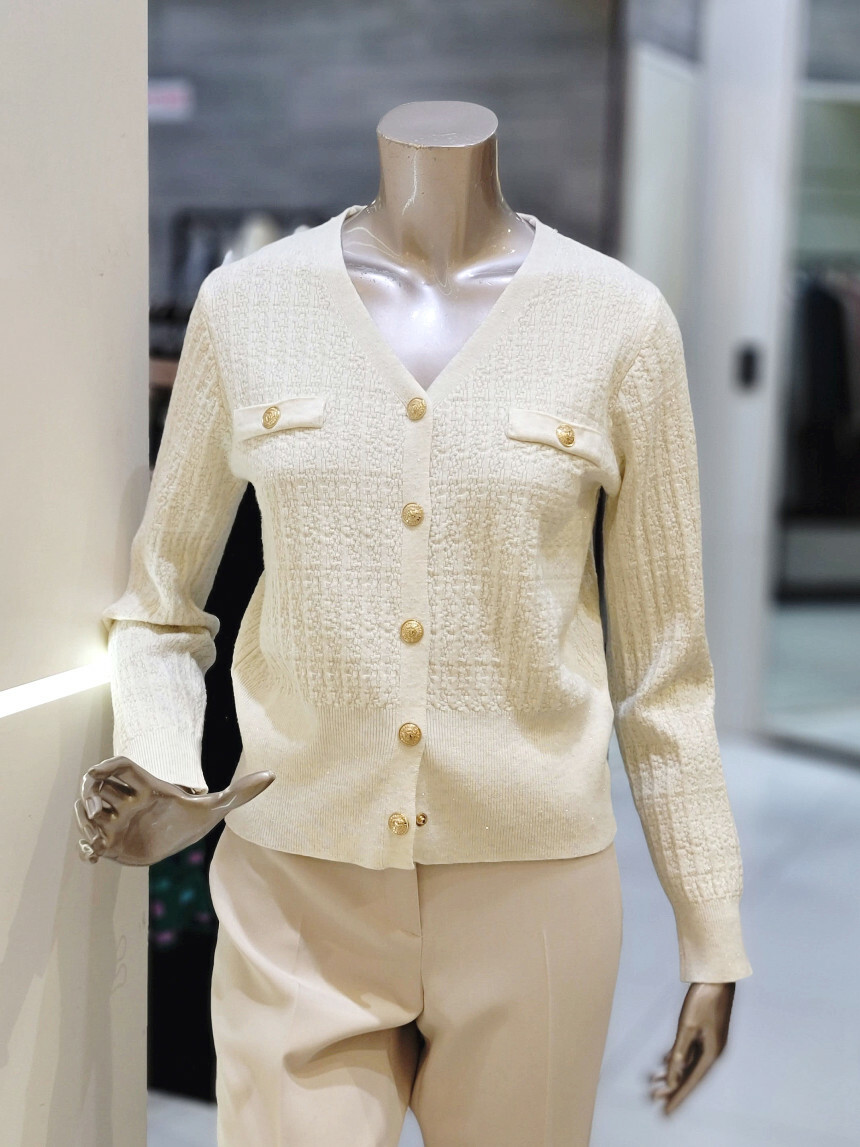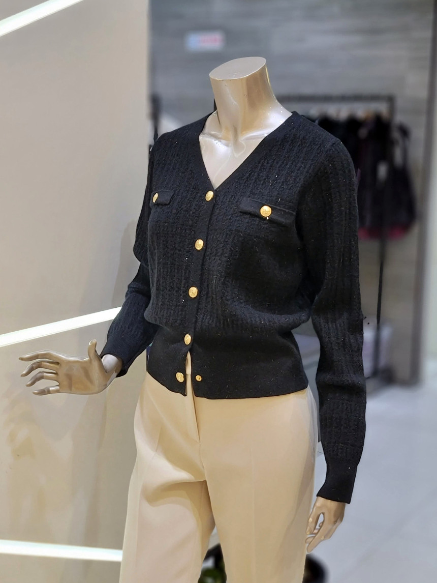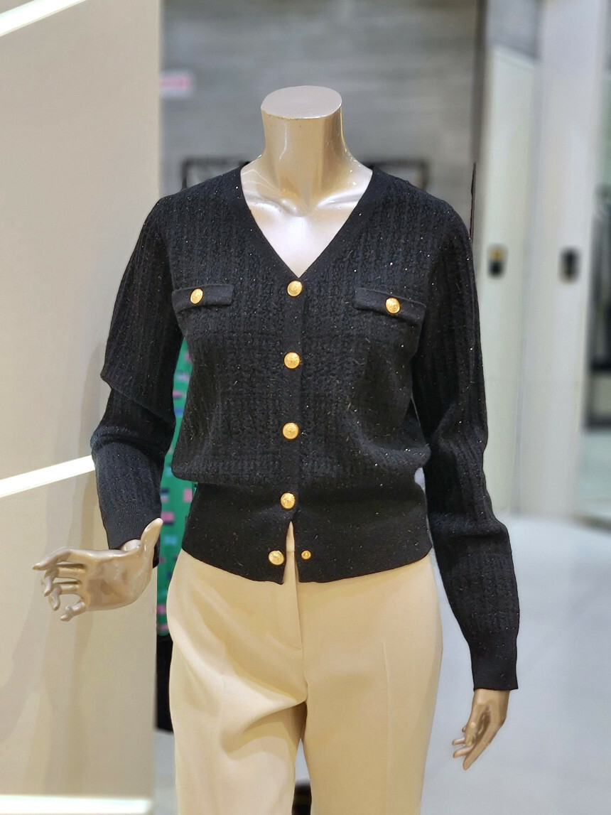 메탈 버튼 장식과 스냅 버튼 클로징 가능한 카디건입니다.