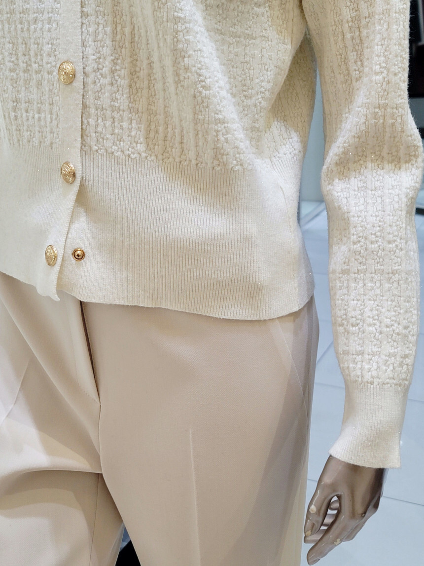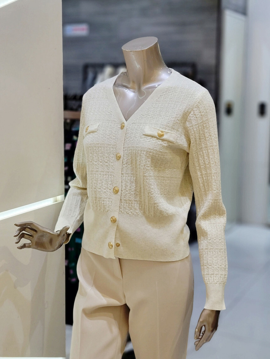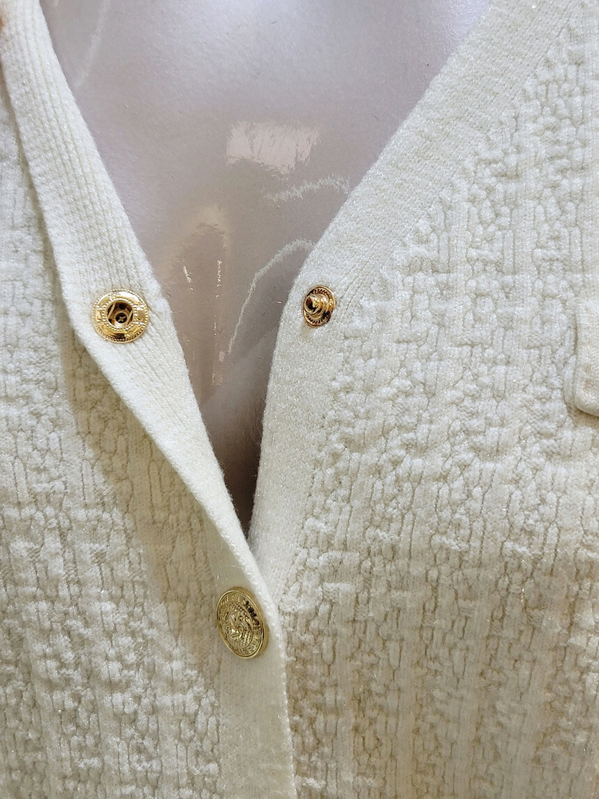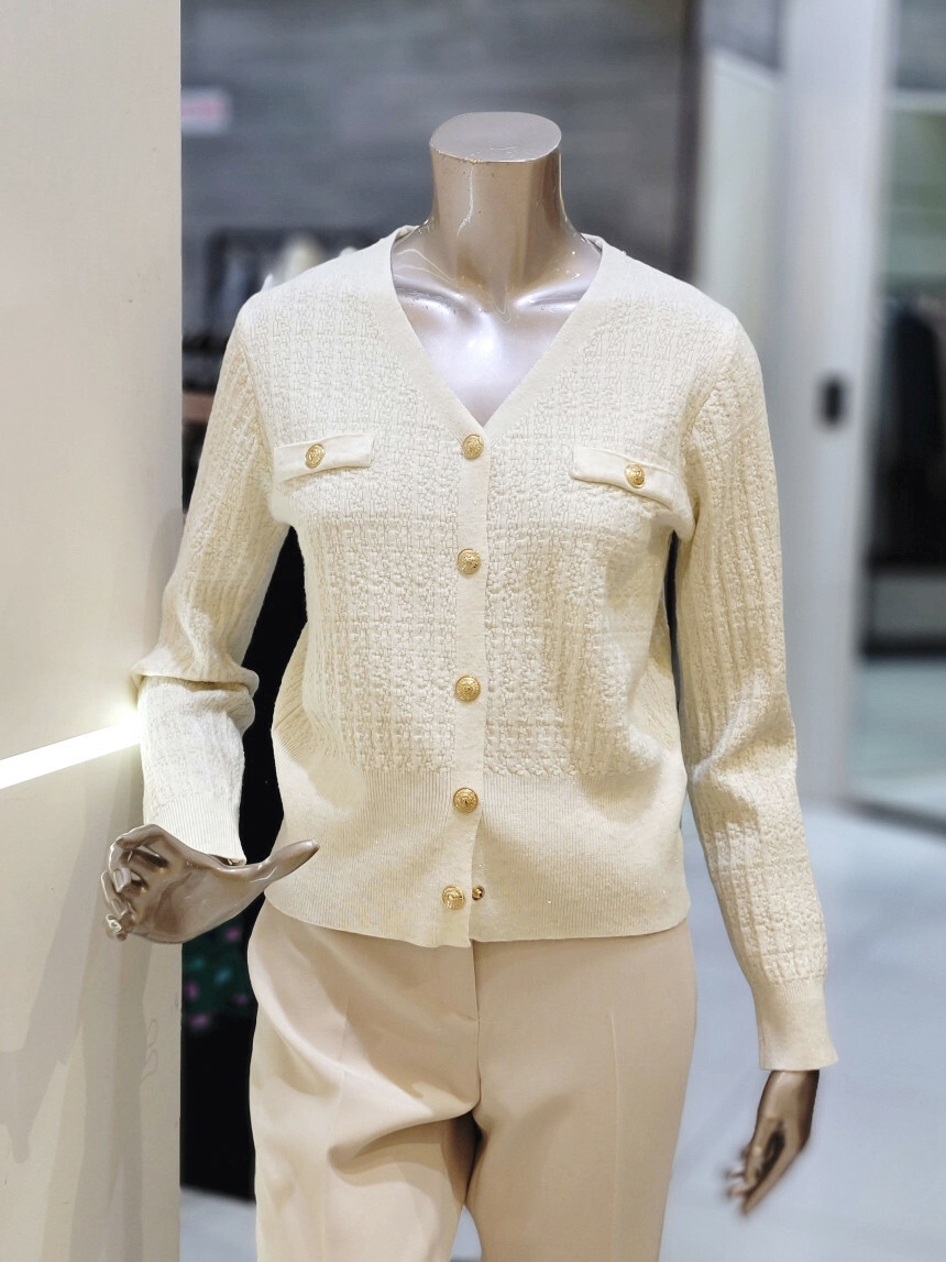 메탈 버튼 장식과 스냅 버튼 클로징 가능한 카디건입니다.