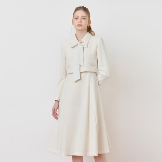 스커트의 플레어 라인이 웨이스트라인도 강조해주어 슬림하고 우아한 실루엣을 연출해줍니다.