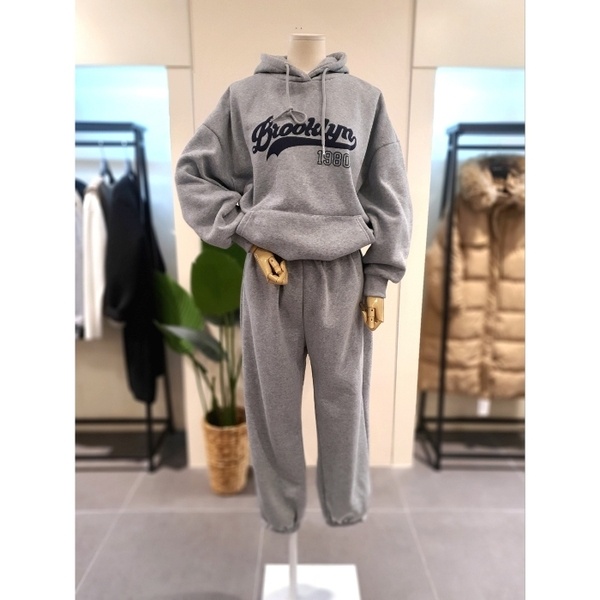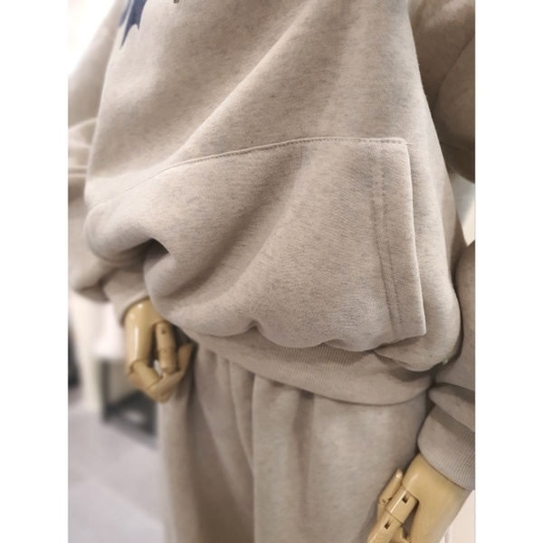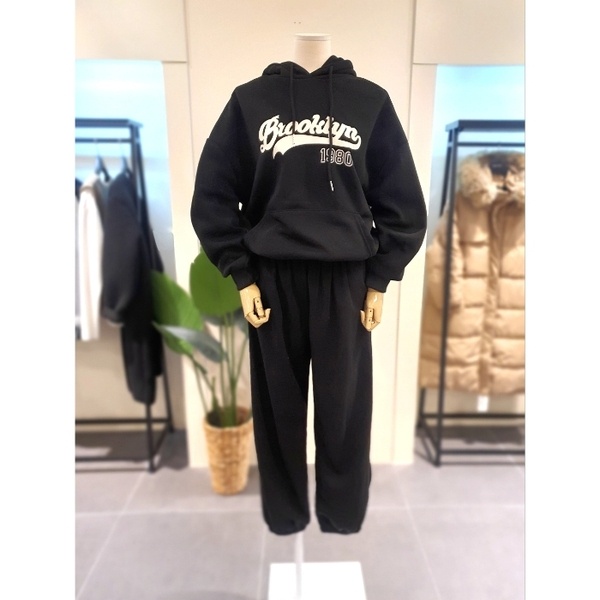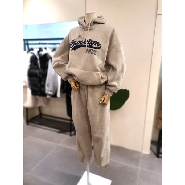 얇은 기모 약기모 원단의 후드맨투맨 조거팬츠 세트입니다.