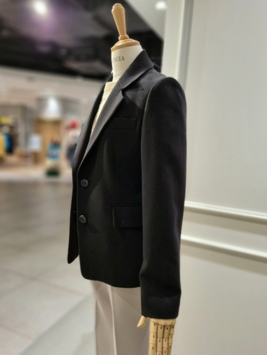 뒷면 트임 신축성이는 깔끔한 재킷입니다.