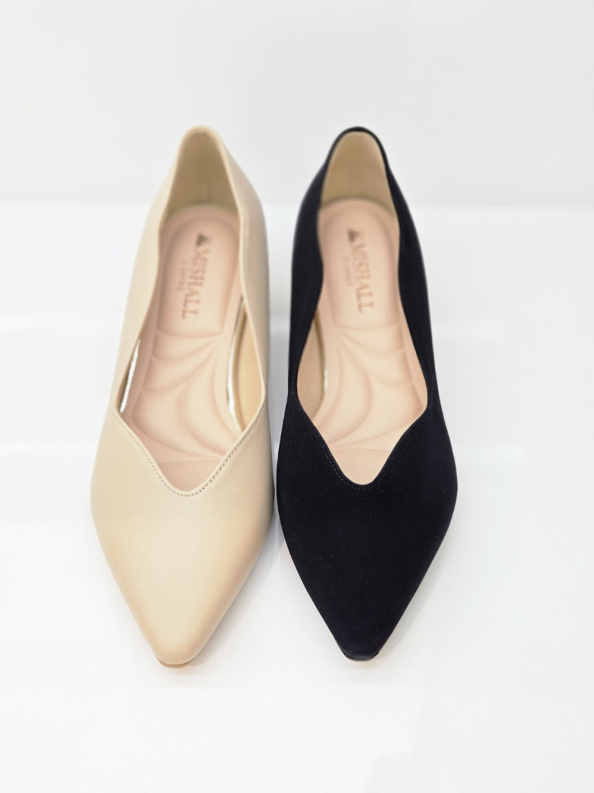 V 라인(아구) 모양의 펌프스 스타일에 옆선