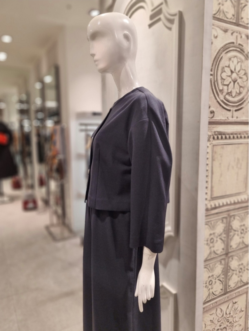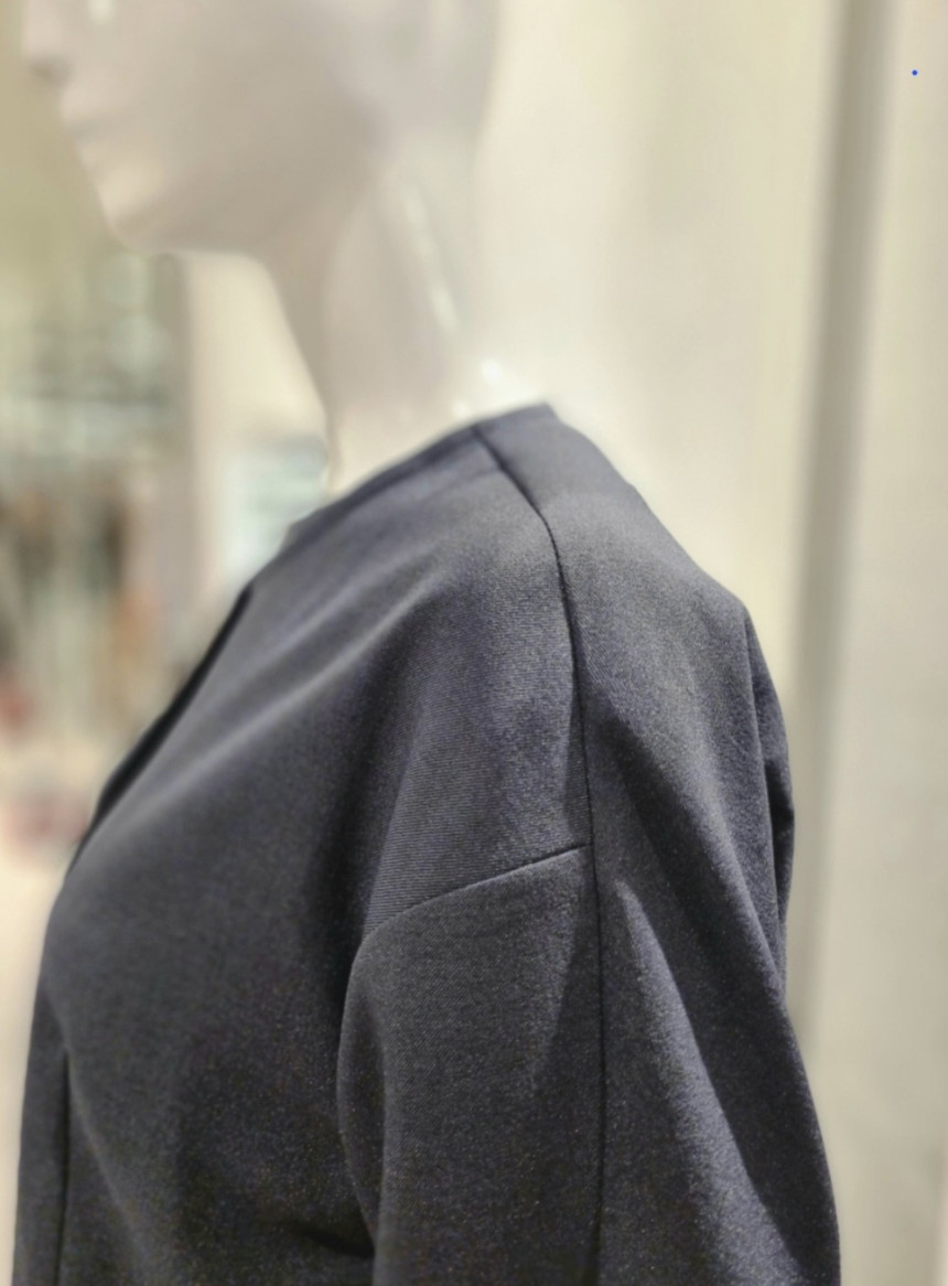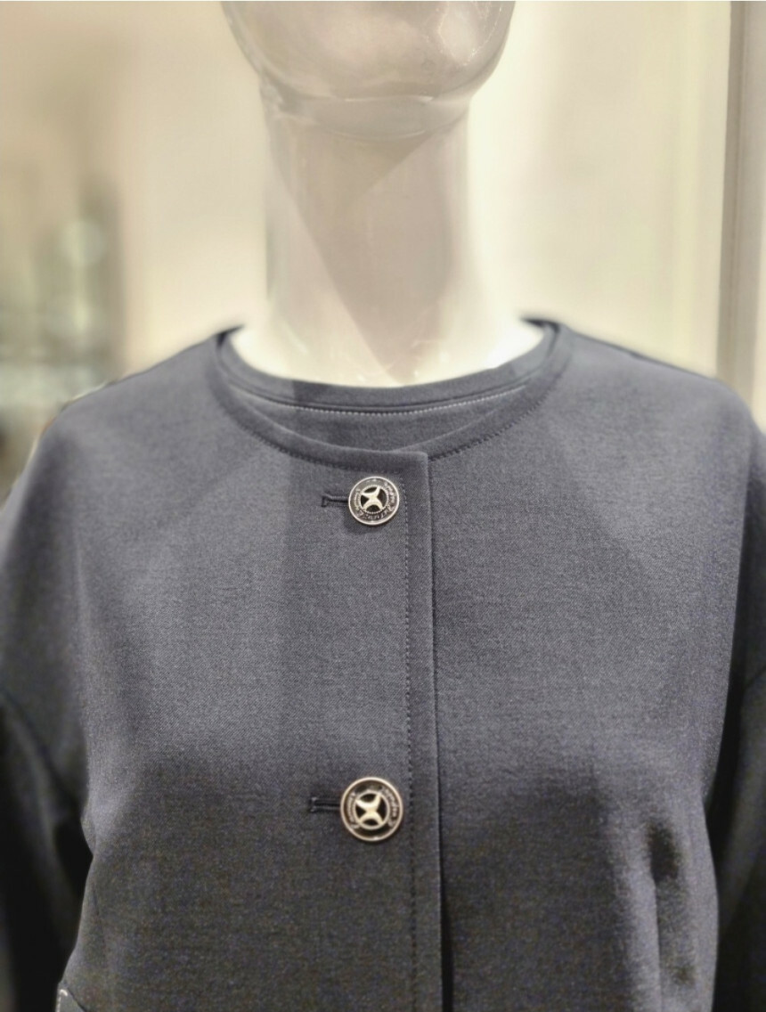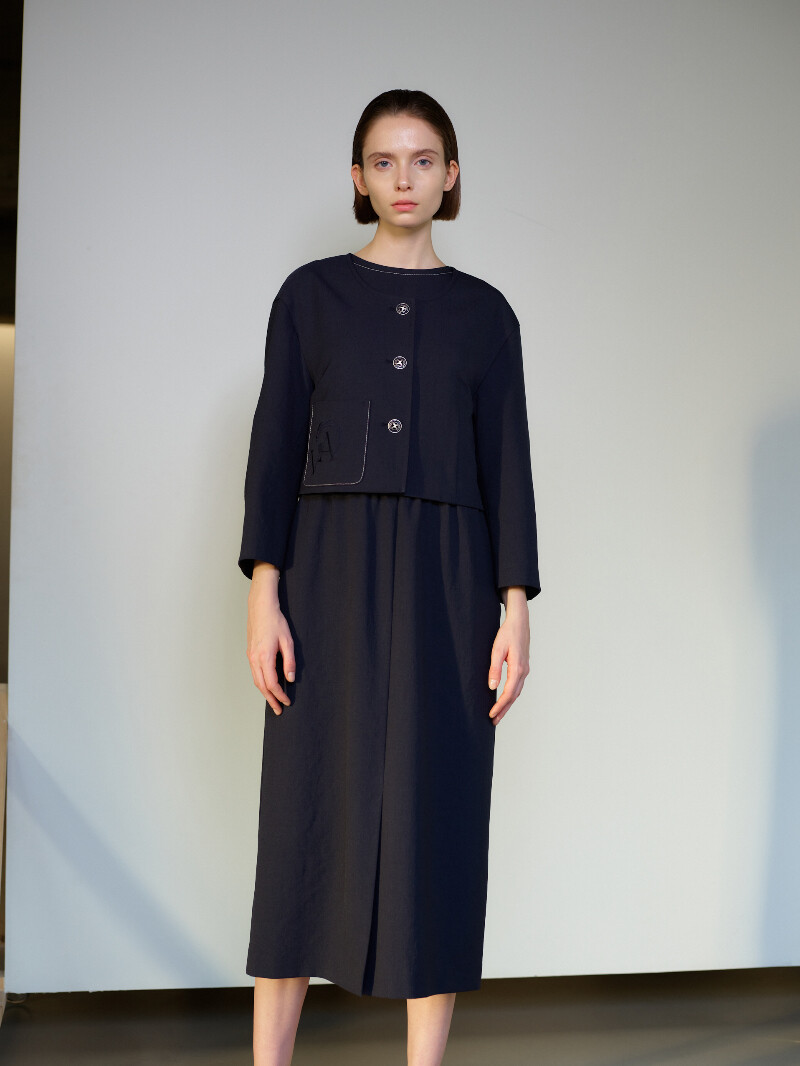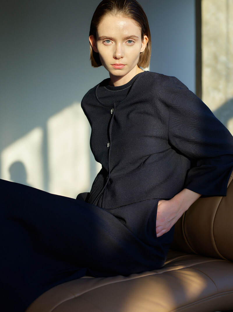 라운드넥에 앞면 버튼 포인트뒷면 트임 디테일을준