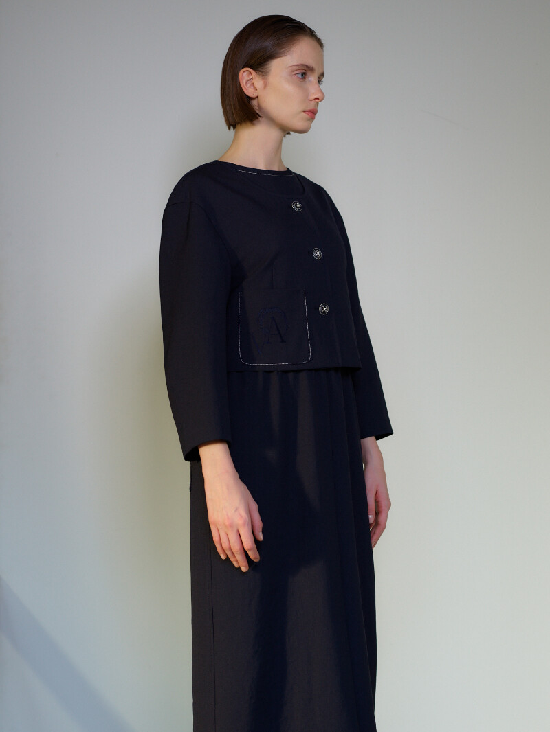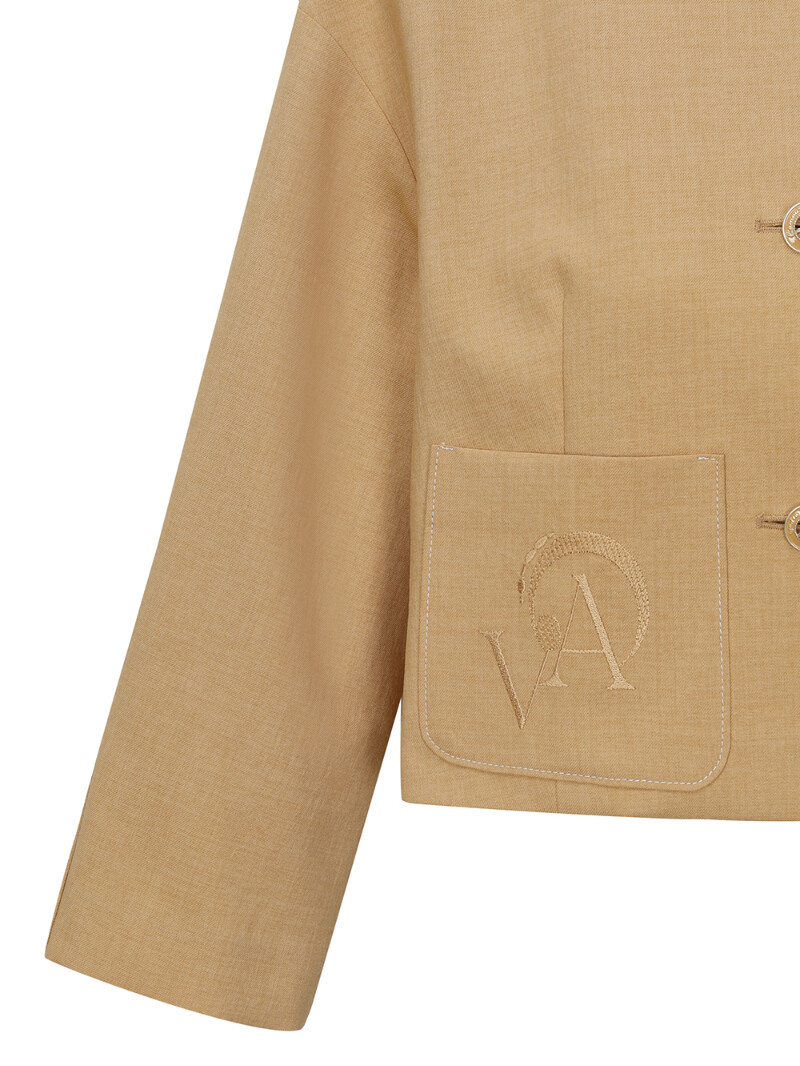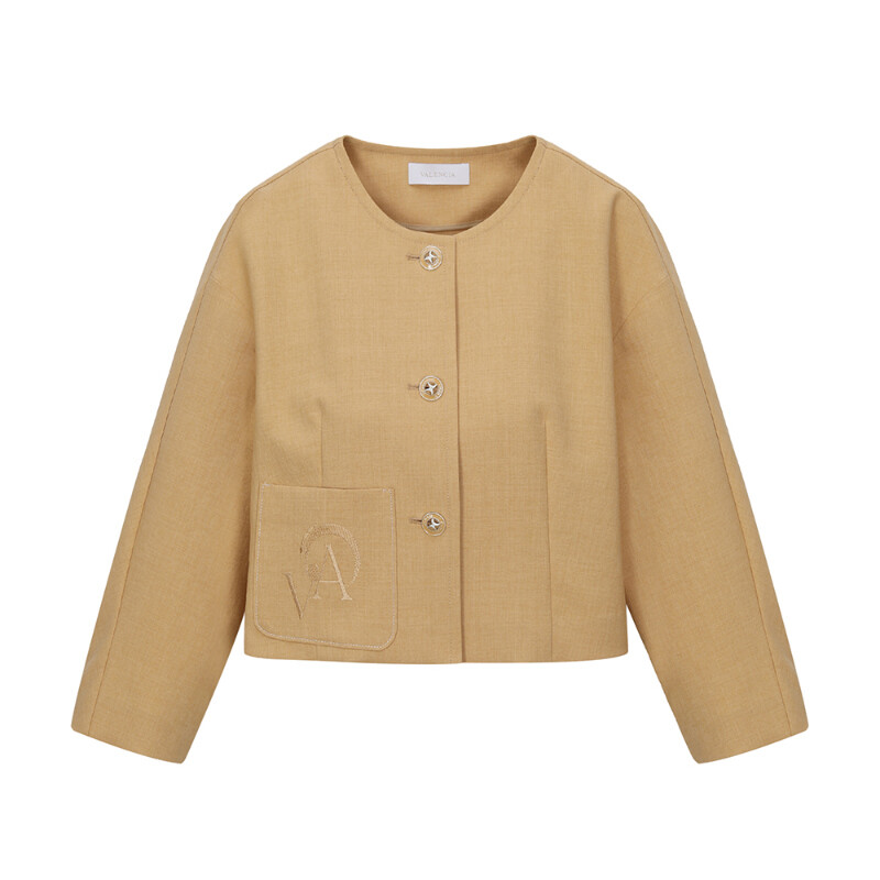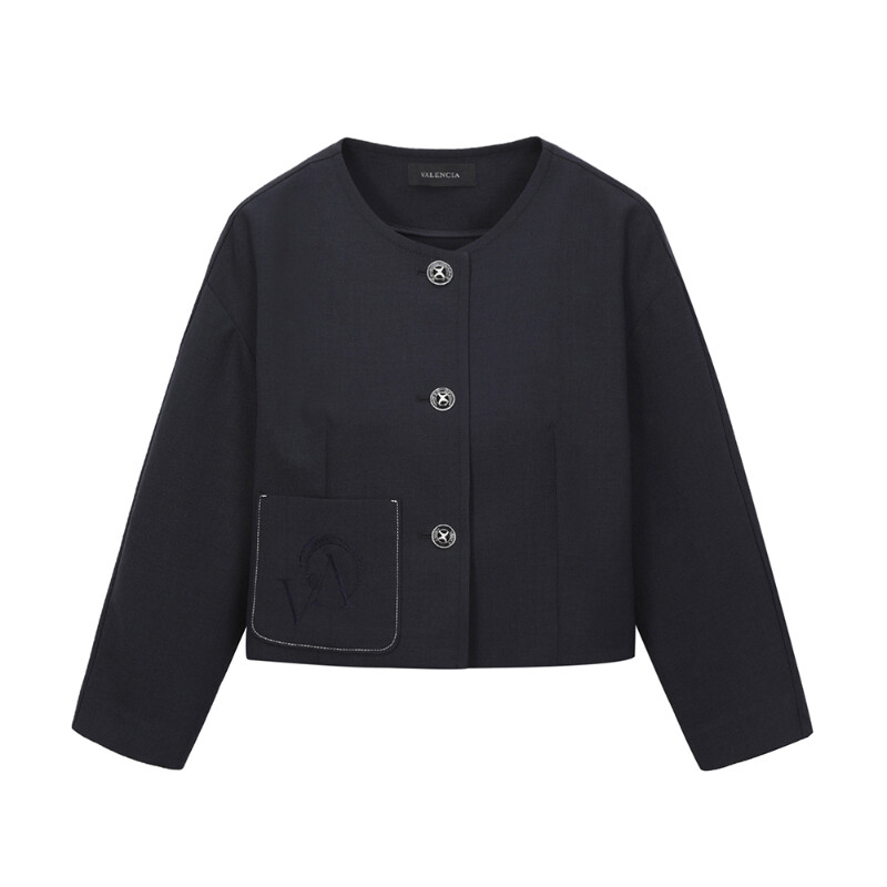 자수포켓 라운드넥 숏 자켓 244MJ02