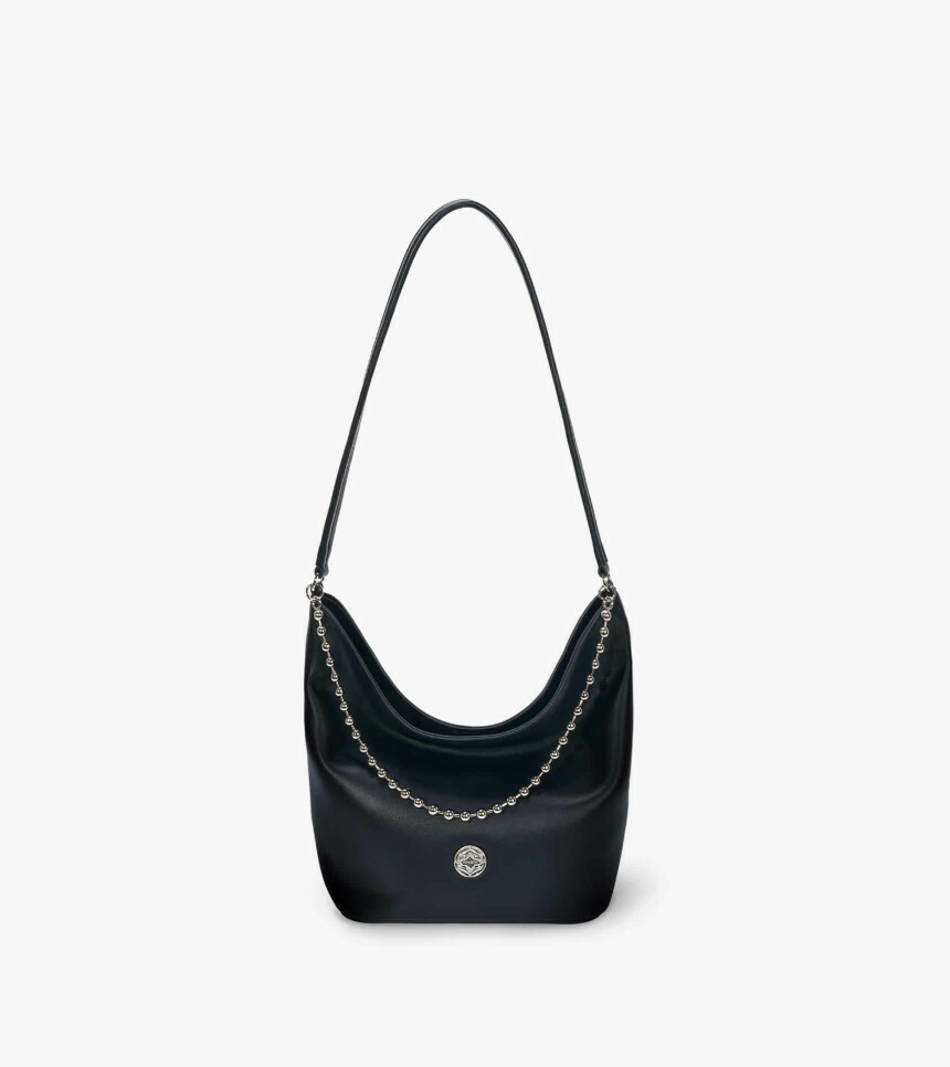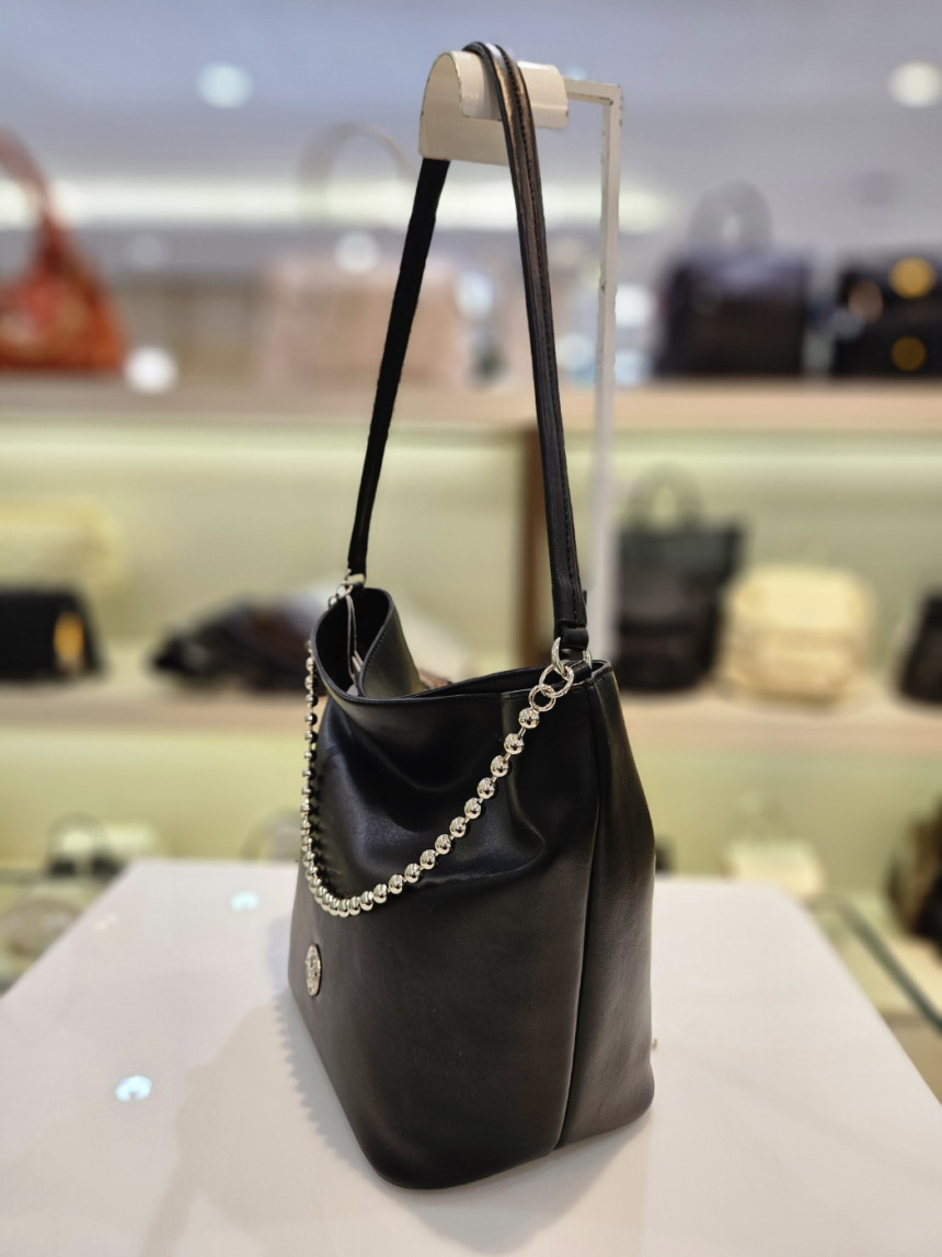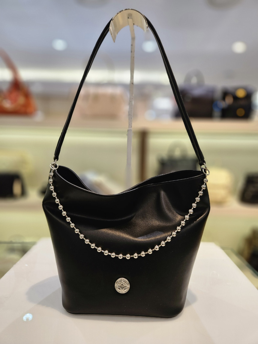 이국적인 무드를 담은 오야니 코인 장식과 볼 체인이 포인트인 버킷백 입니다.