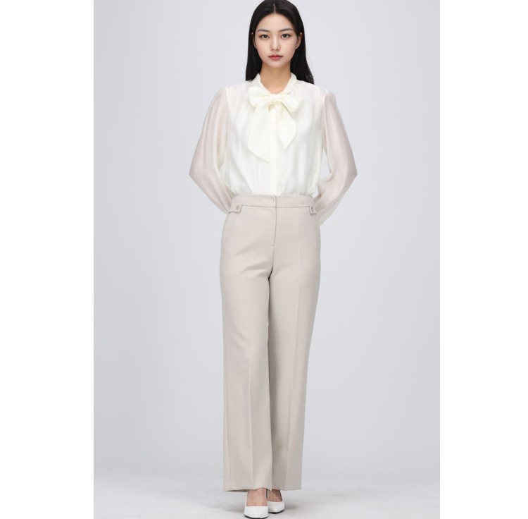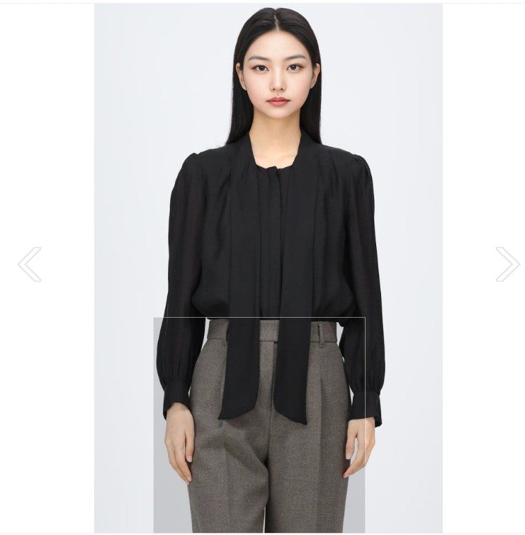 네크라인의 잔셔링 주름을 잡고 타이로 다양하게 연출이 가능한 블라우스입니다.