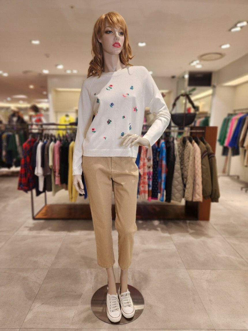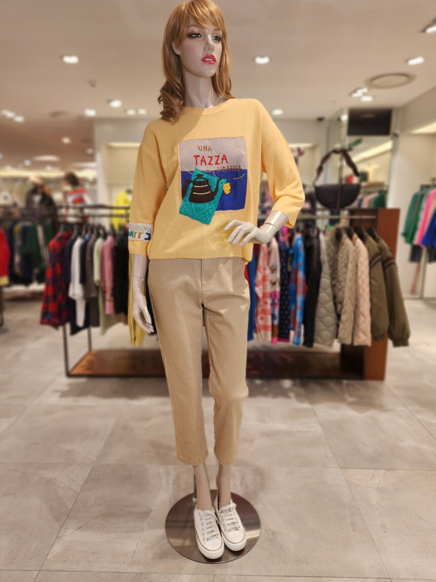 7.니트류는 자가드 프린트 기법으로 제작되어 앞부분에 예쁜 프린트처리가 되어 있습니다