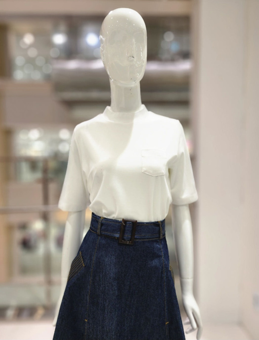 한쪽 포켓포인트 기본 핏으로 몸에 붙지않은 소급진 티셔츠입니다.