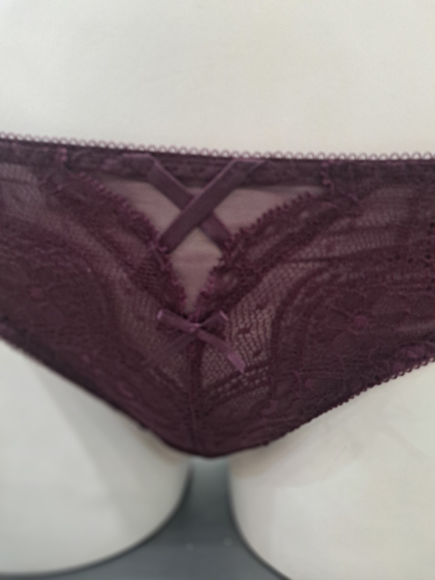 고급스러운 퍼플 컬러와 앞판 X 스트링 포인트로 섹시함을 강조한 제품.