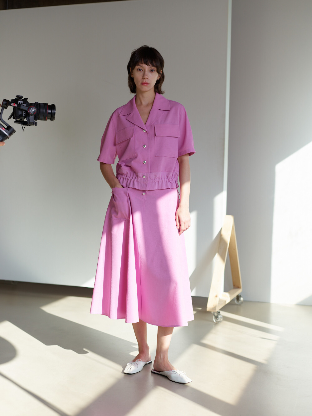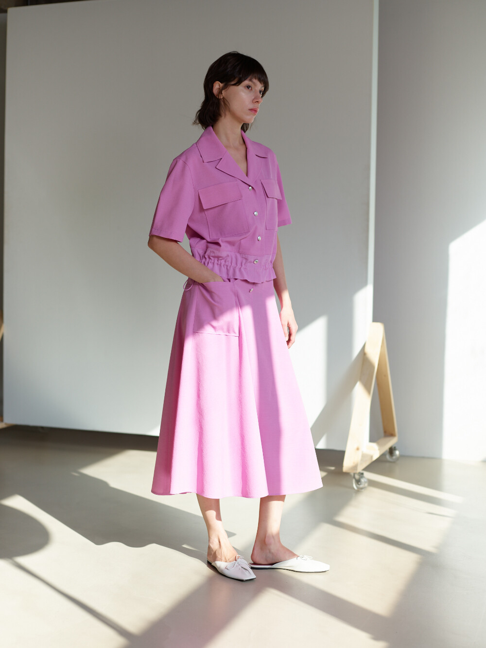 A라인 롱기장 뒷밴딩 집업으로되어있는 여름소재 재킷 셋트로나온 롱스커트입니다.