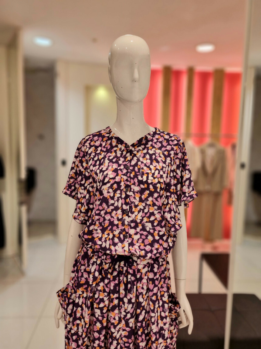 전체 프린트가 화사하게 피어난 시원한 구김없는소재감