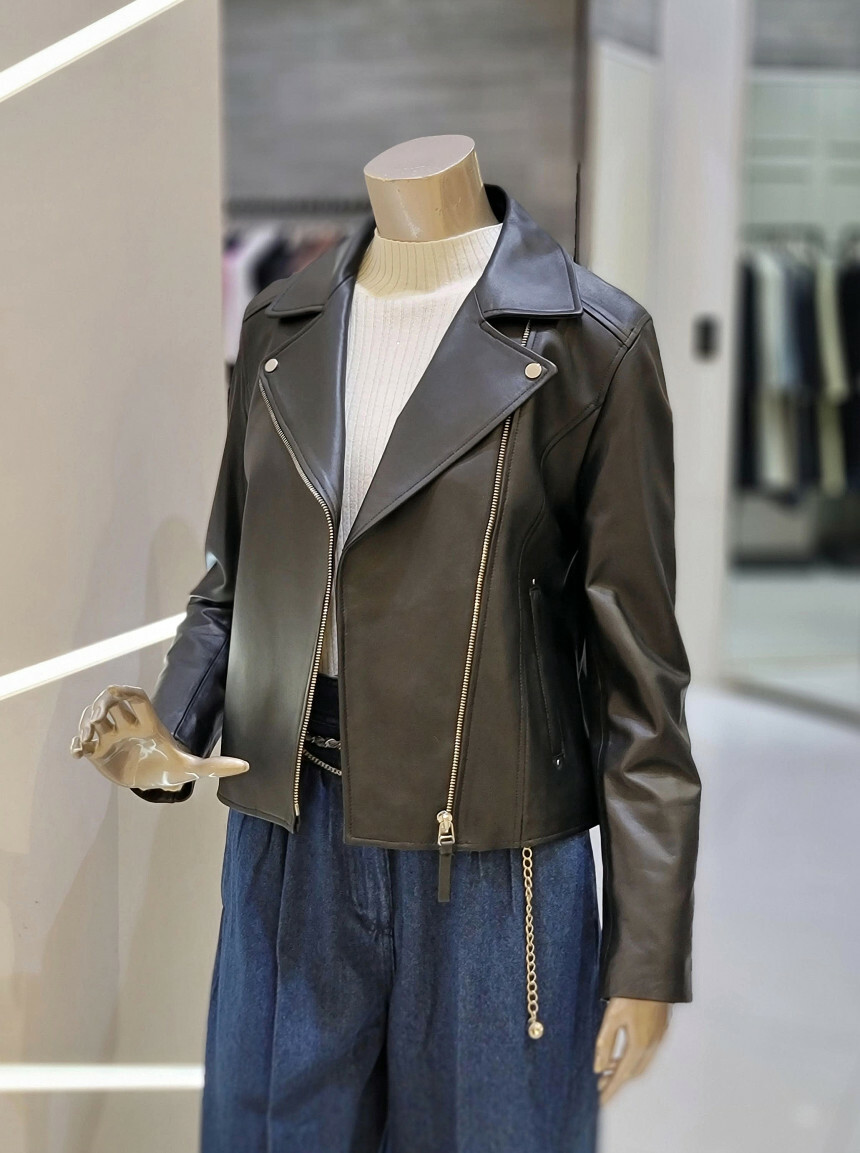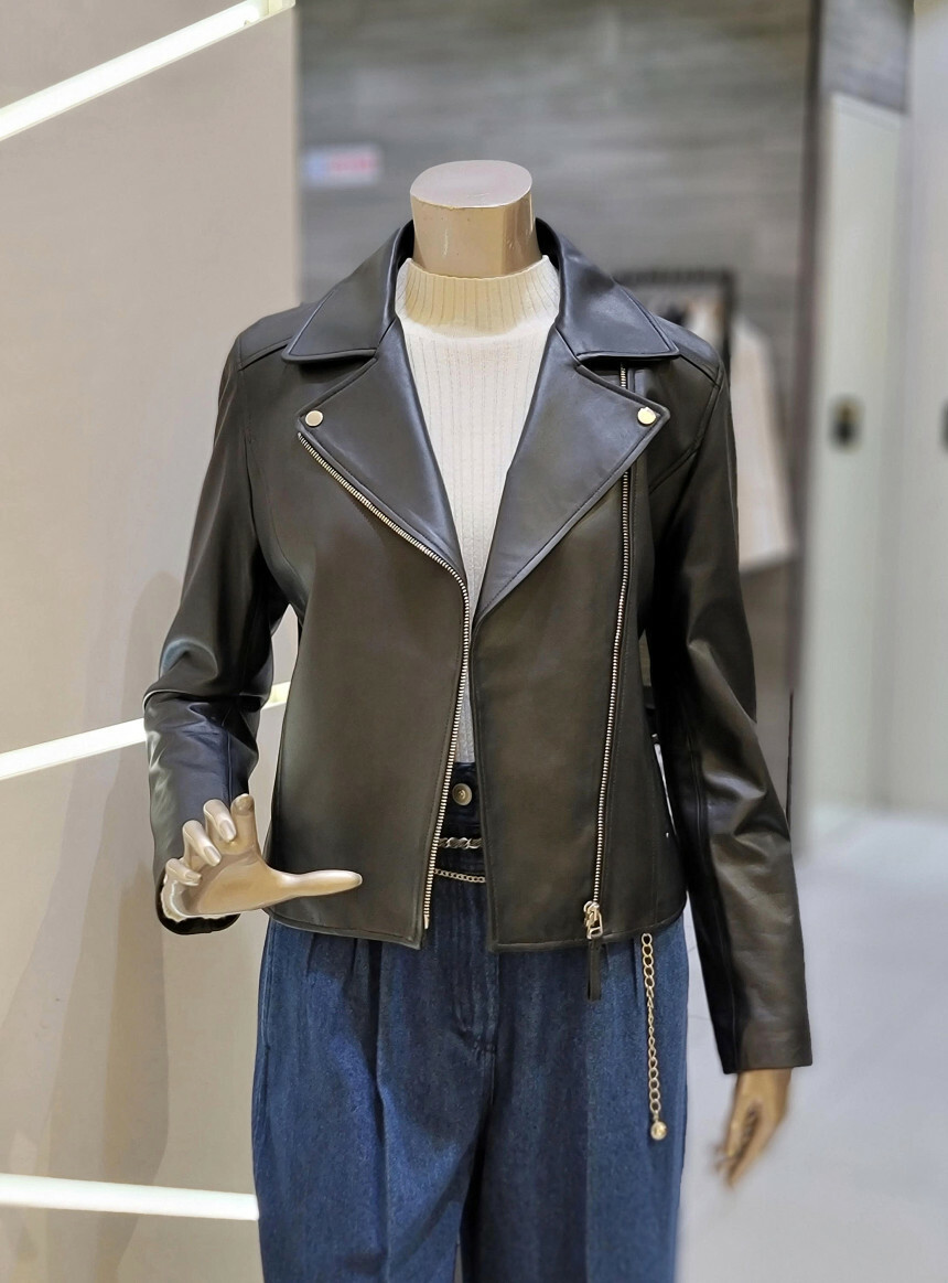심플하고 세련된 분위기의 양가죽 라이더 재킷입니다.