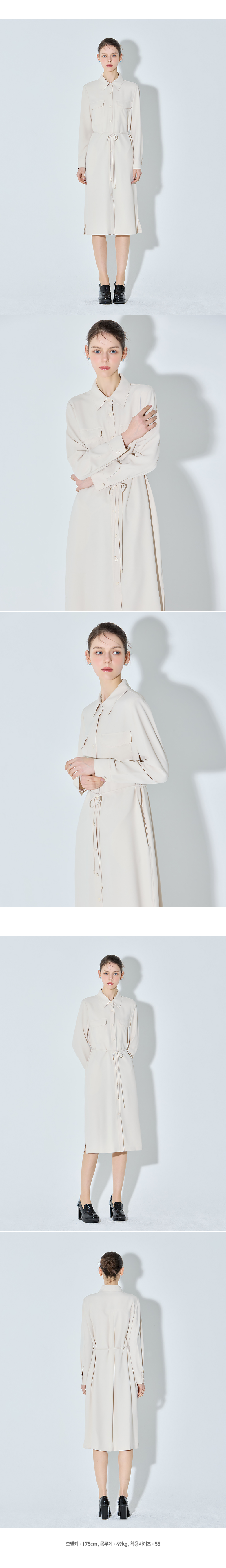 세련된 셔츠 디자인에 허리 조절 스트링이 더해져 편안하면서도 여성스러운 실루엣을 완성시켜주는 원피스입니다.