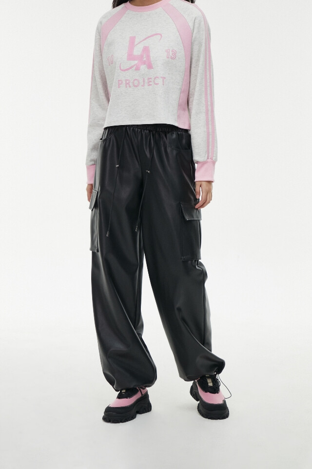 카고 포켓 허리 밴딩 레더 팬츠 ~