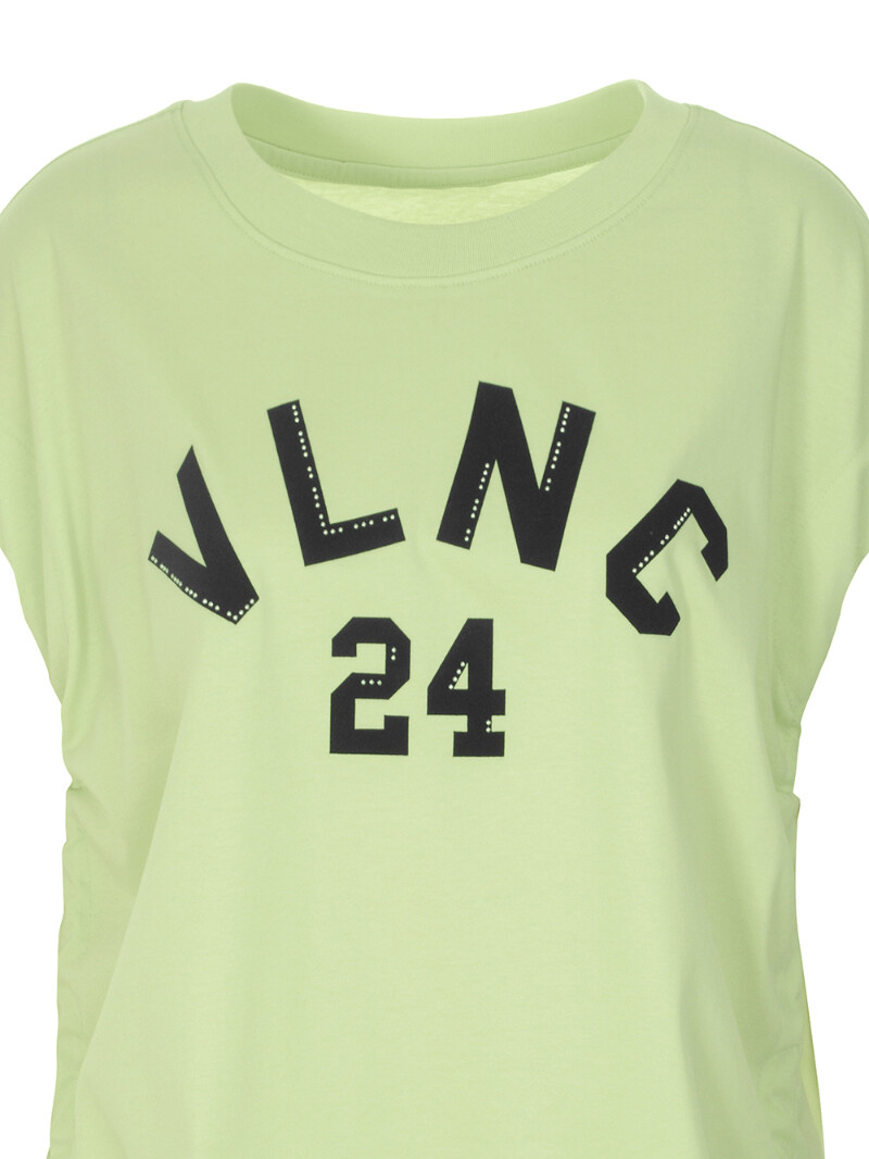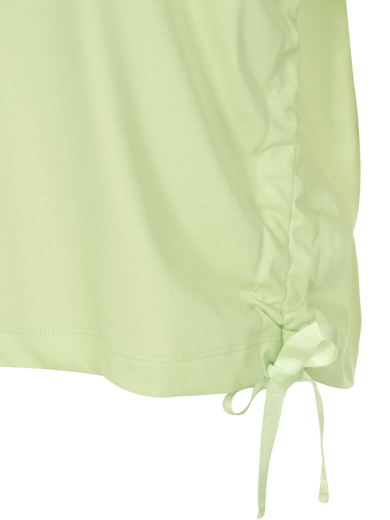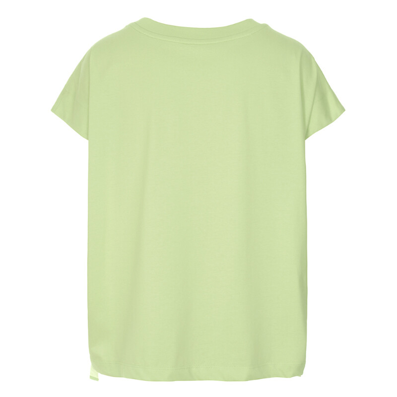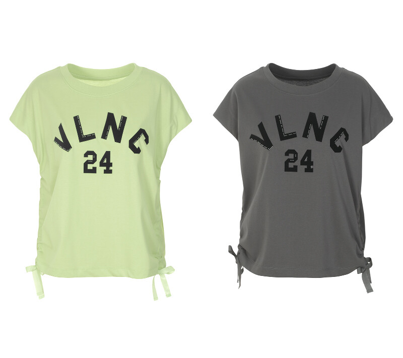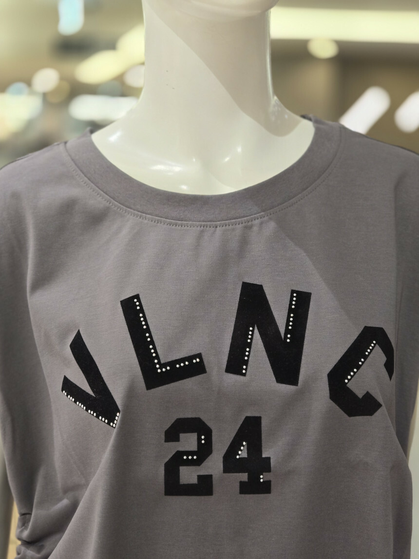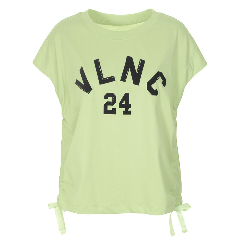 라운드넥에 양사이드 셔링 리본연출되는 앞면 레터링 포인트