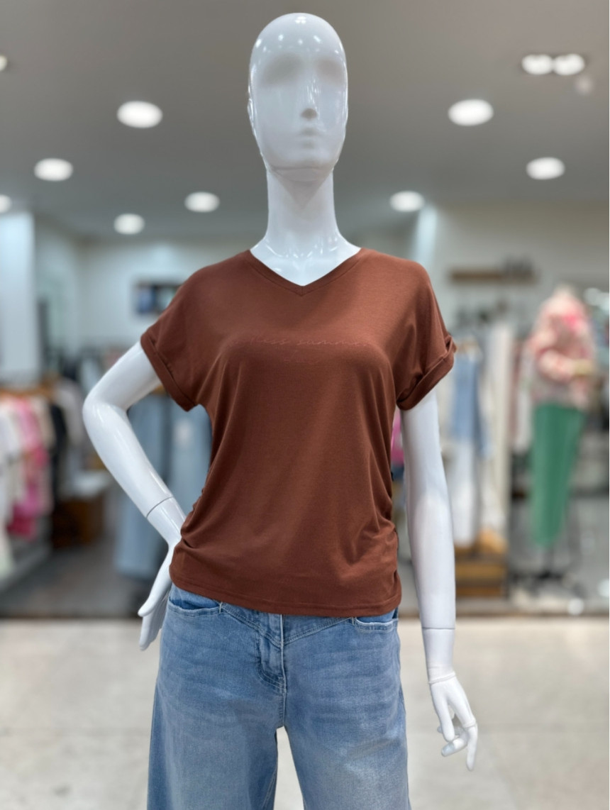 롤업 소매 셔링포인트 티셔츠