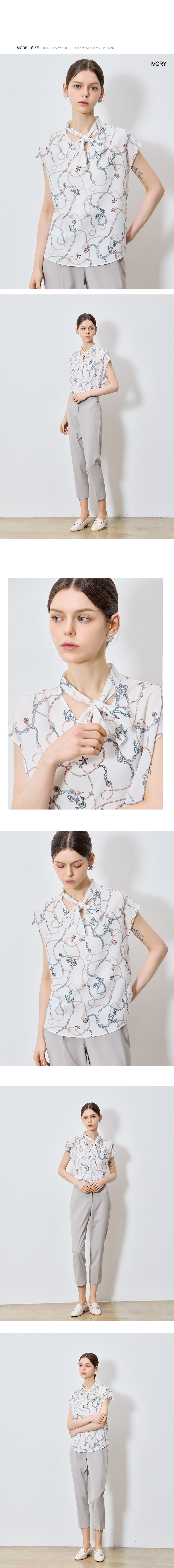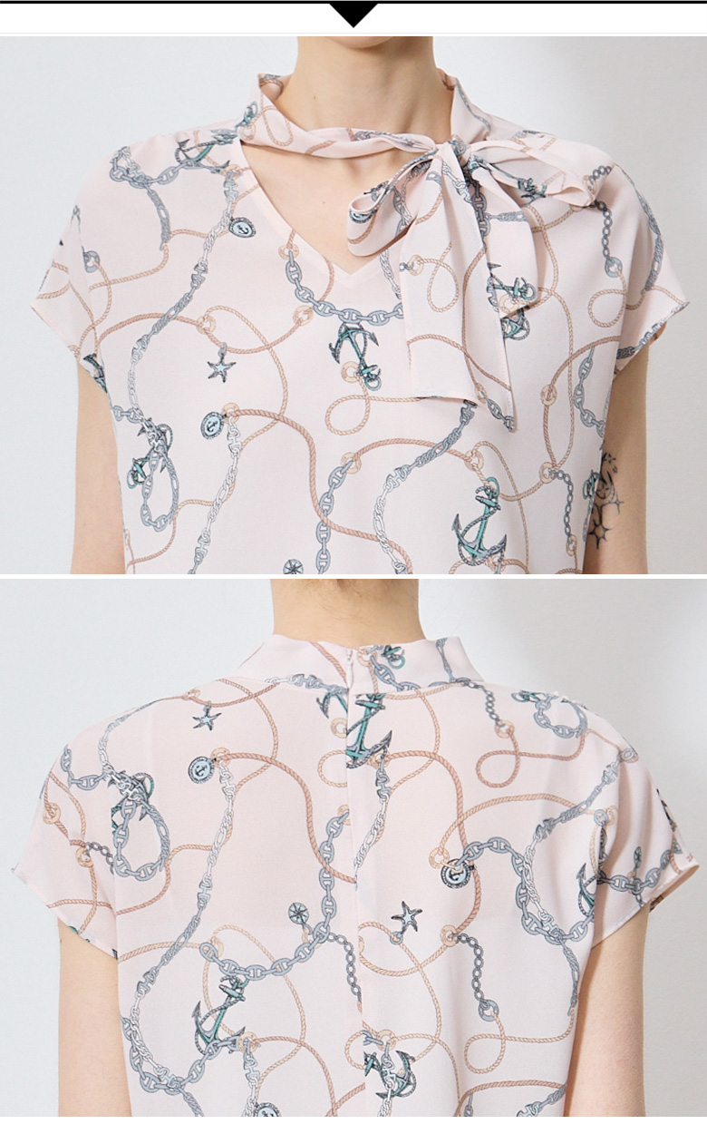 ▶ ITEM : 프린팅 보우넥 캡 블라우스