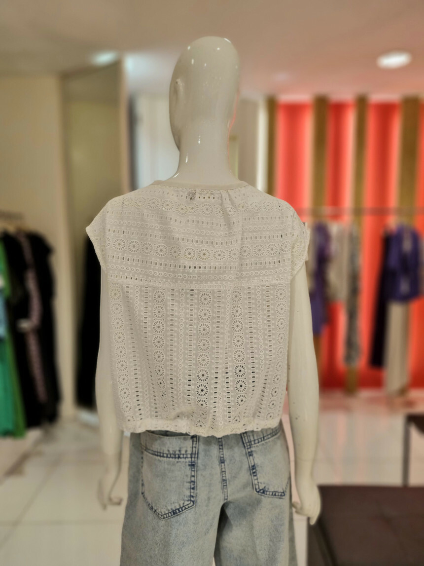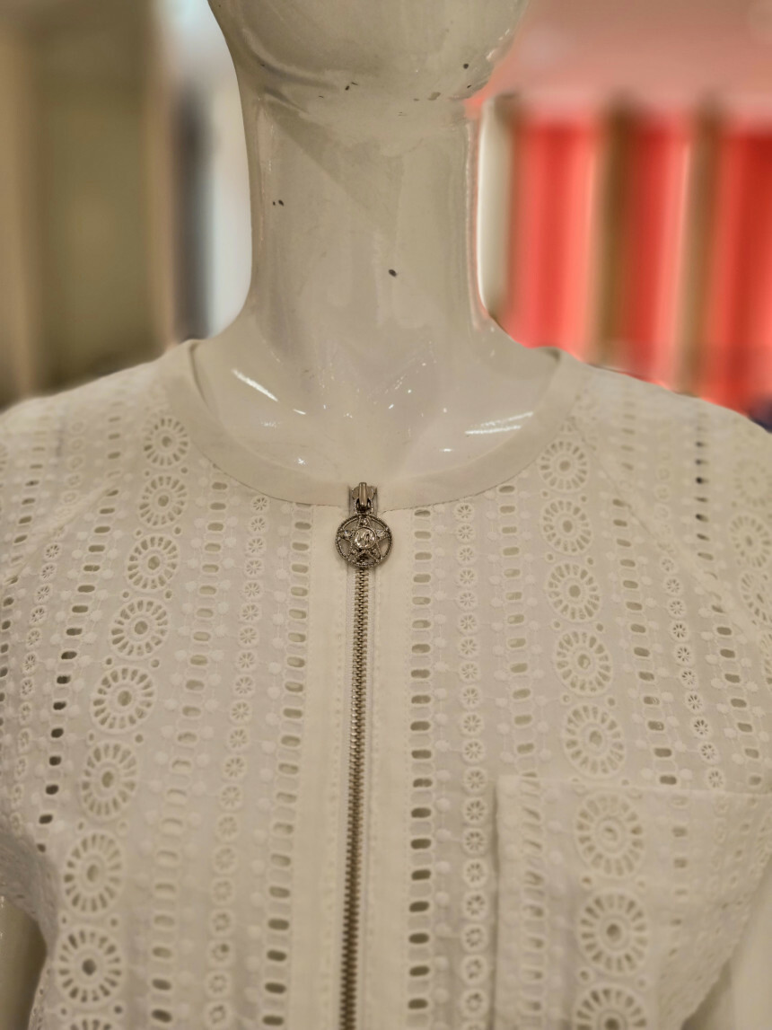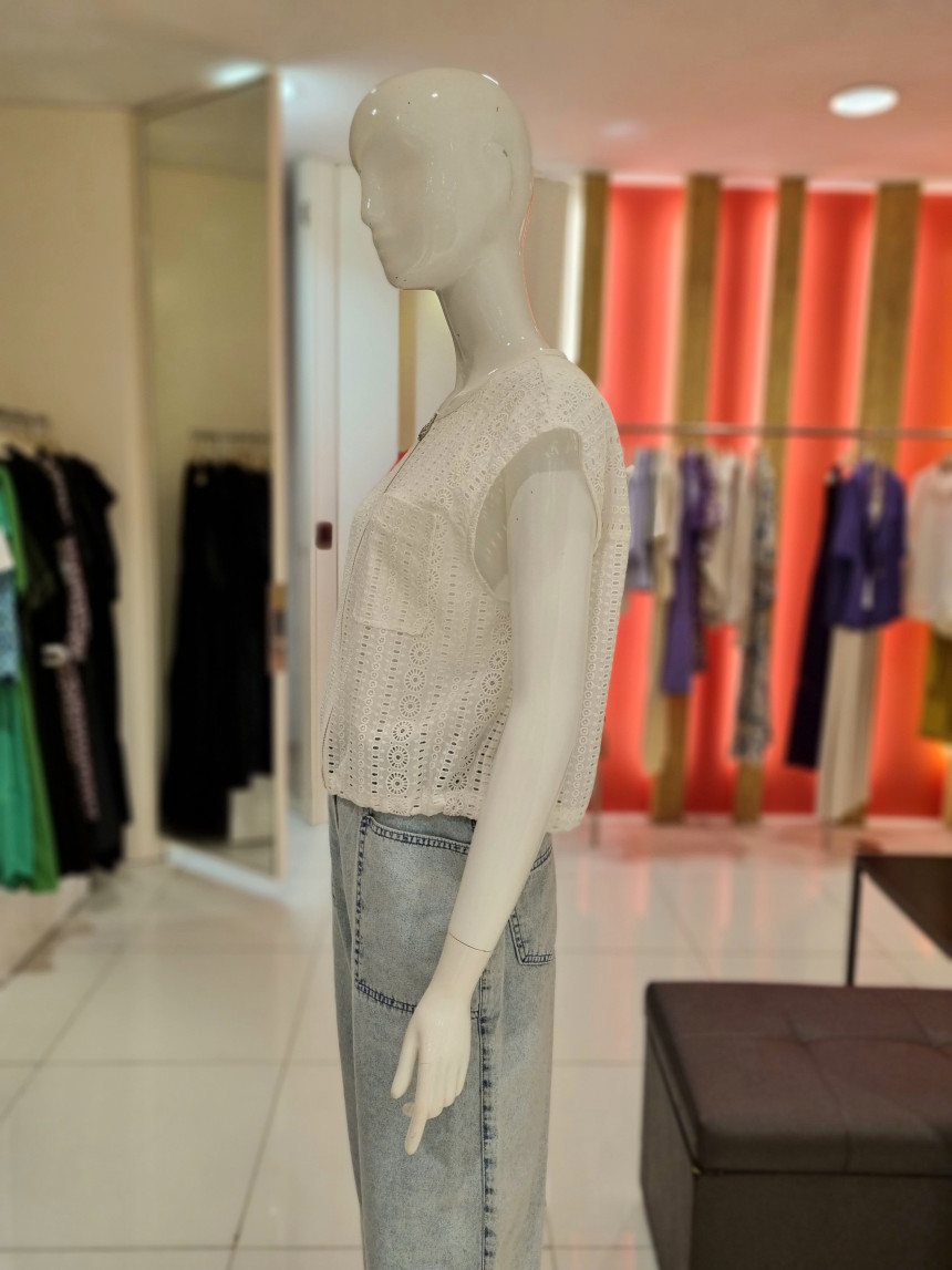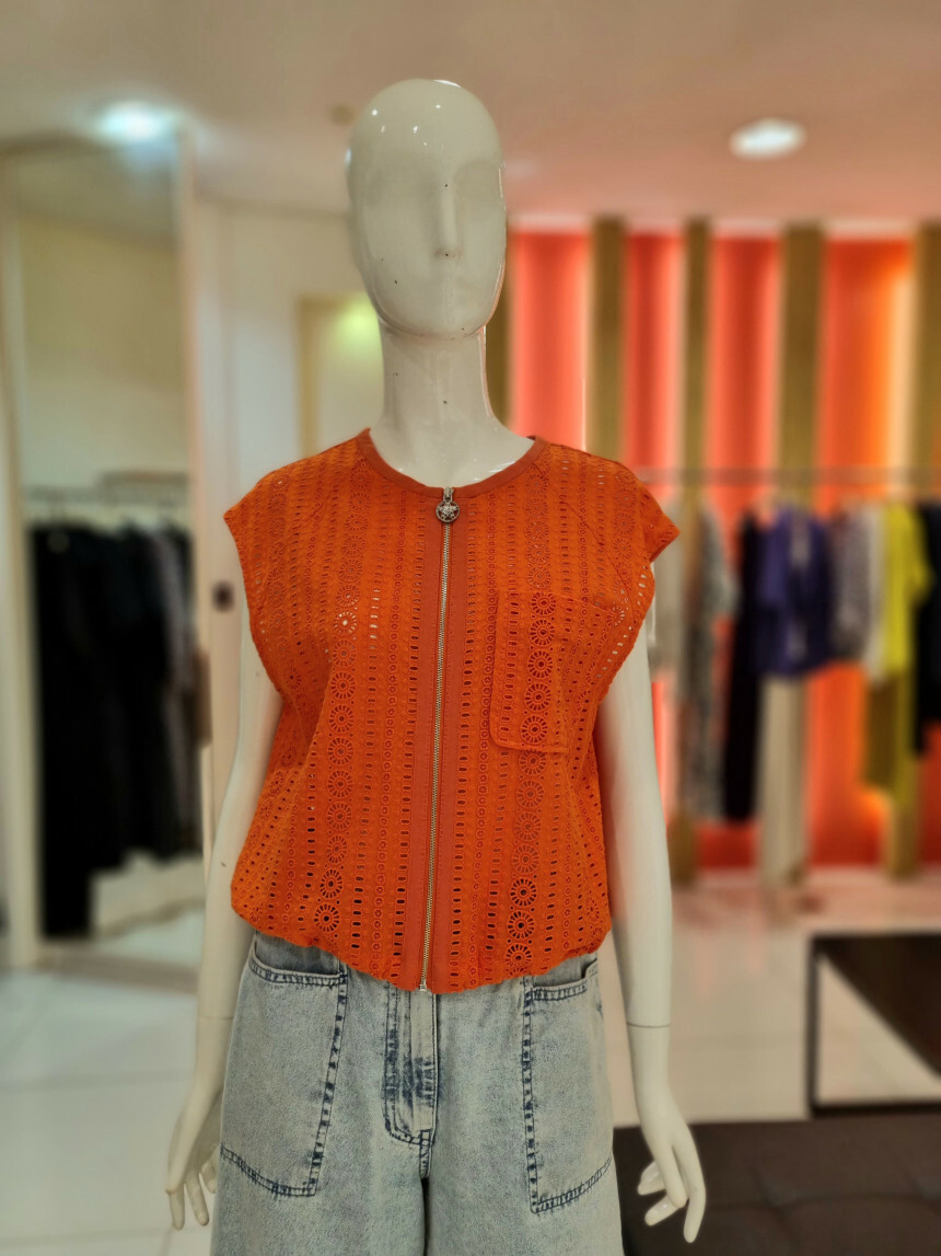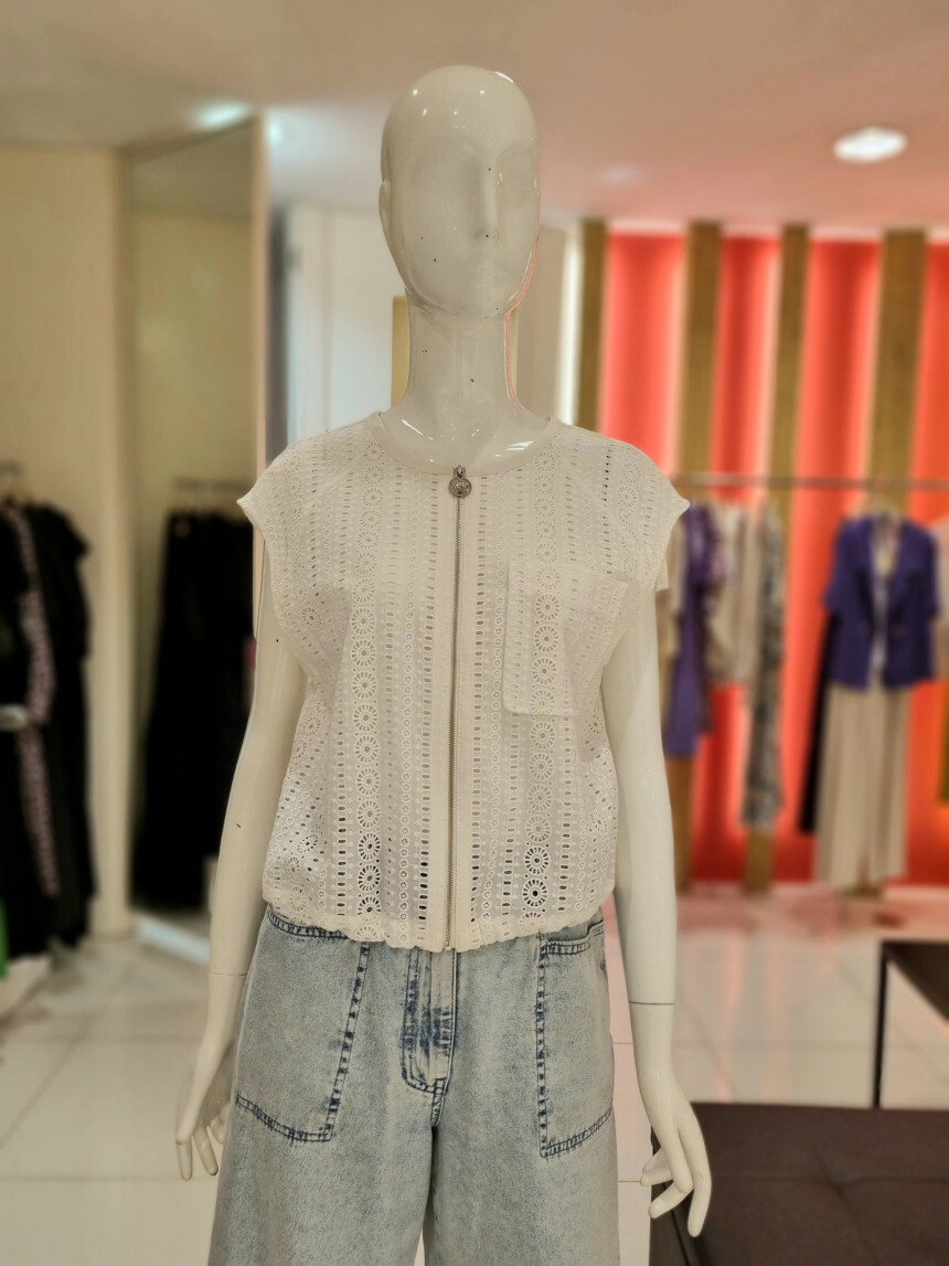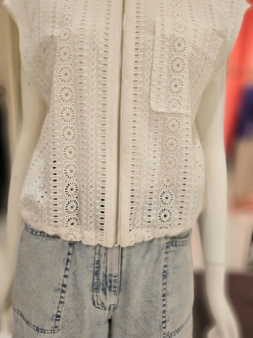 집업으로 클로징되는 민소매 자수 펀칭 베스트