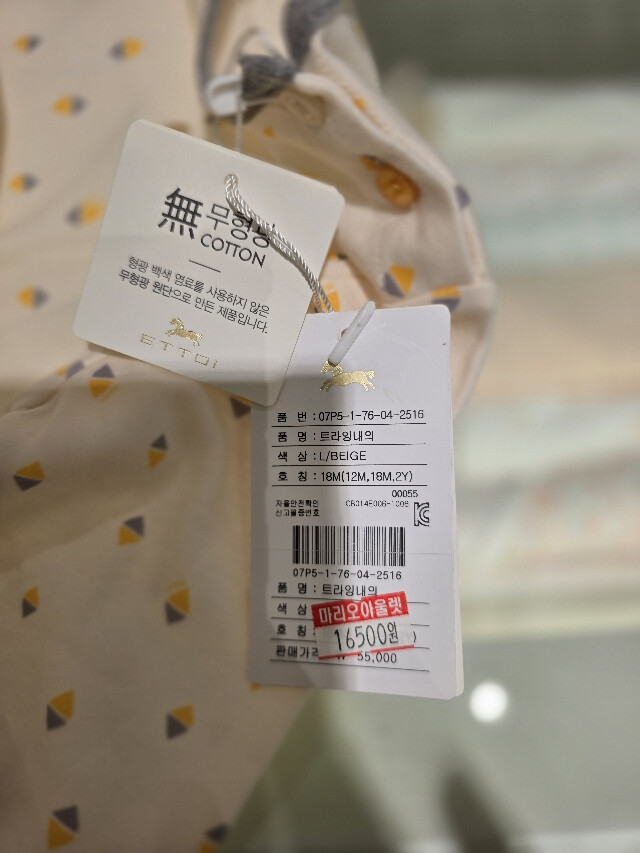 부드러운 면 소재의 내복입니다