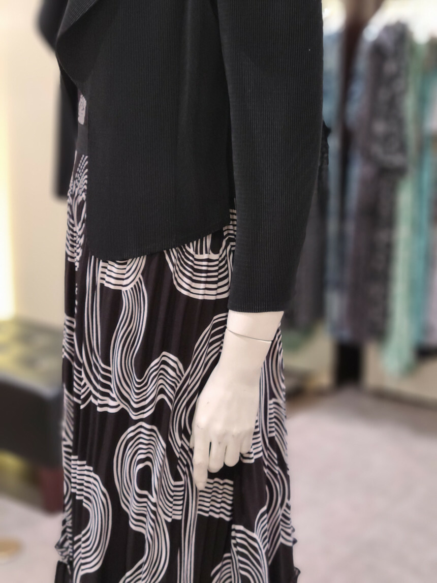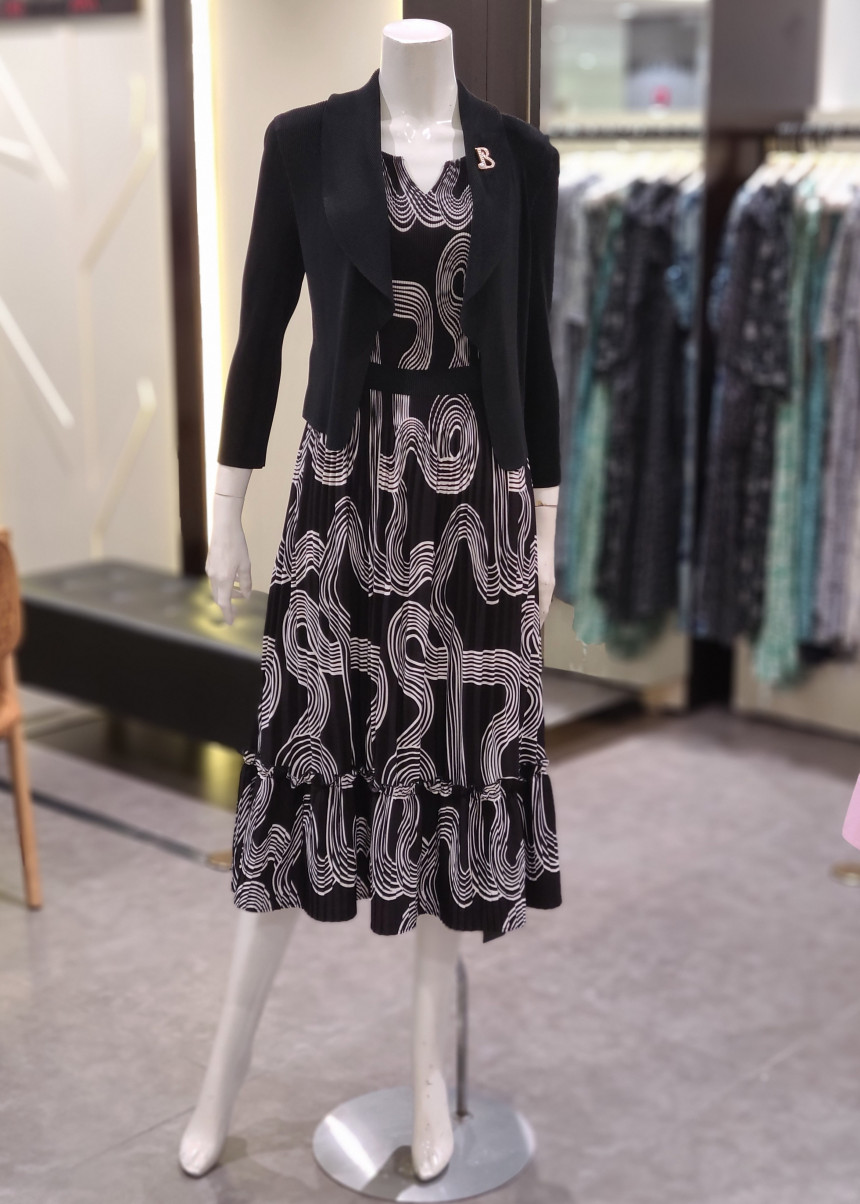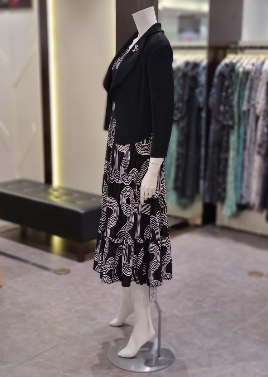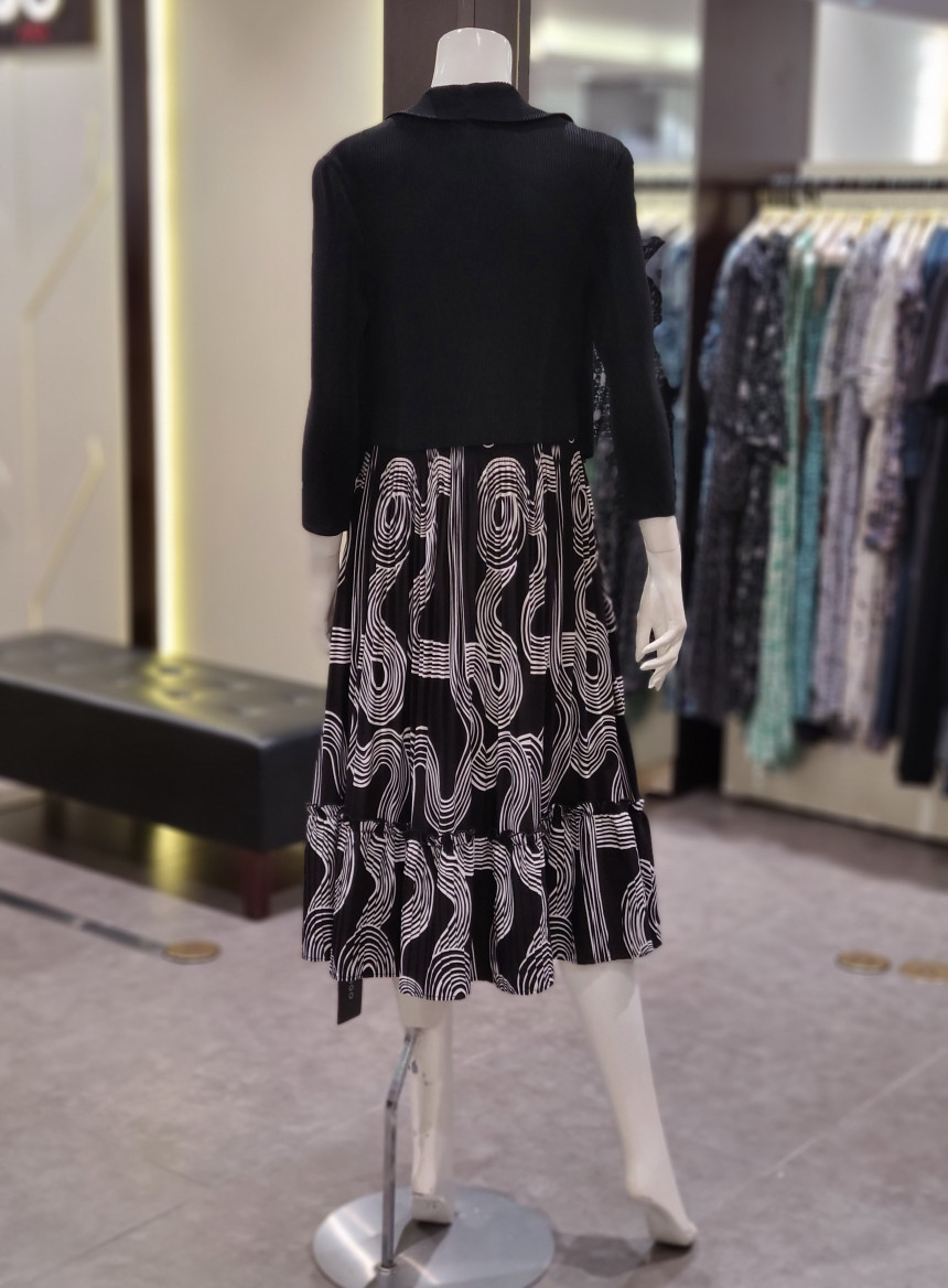 카라넥 플리츠 프린트 원피스입니다