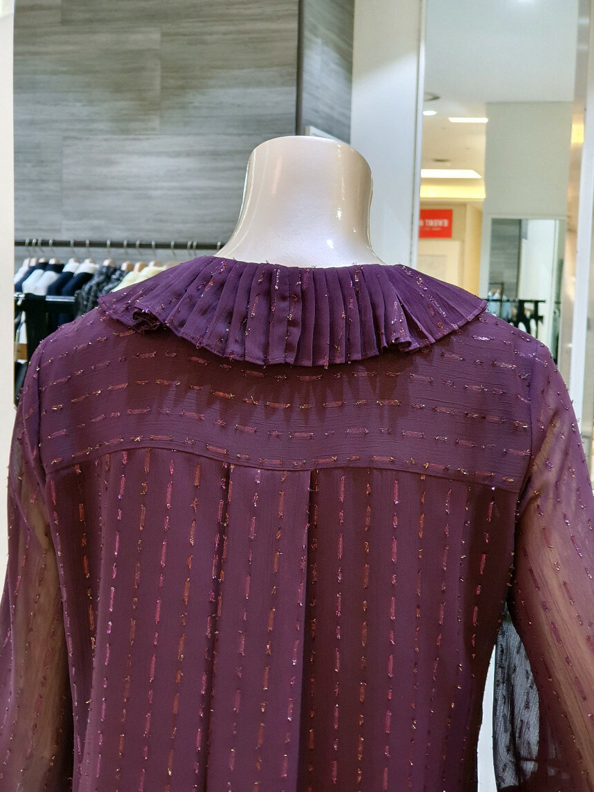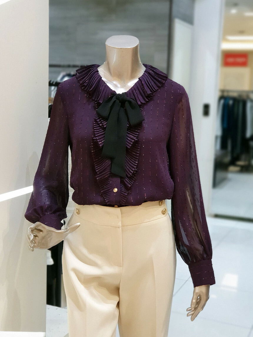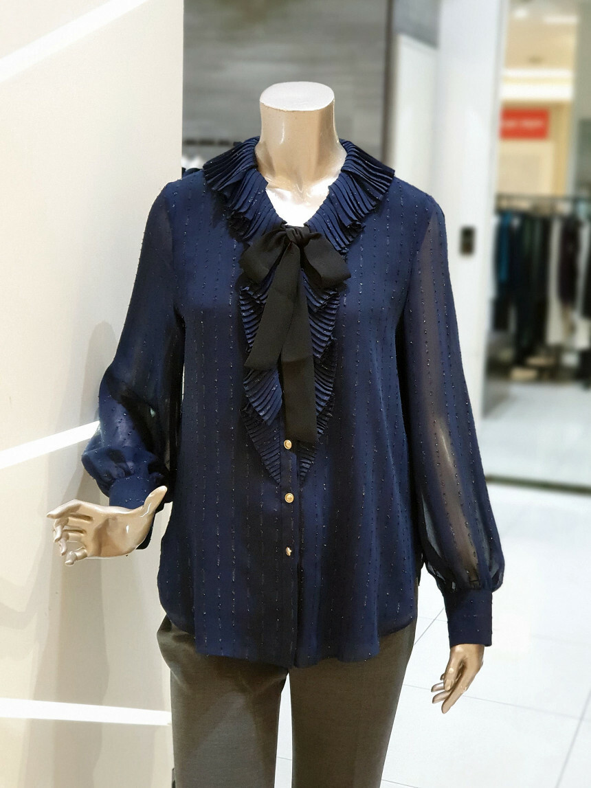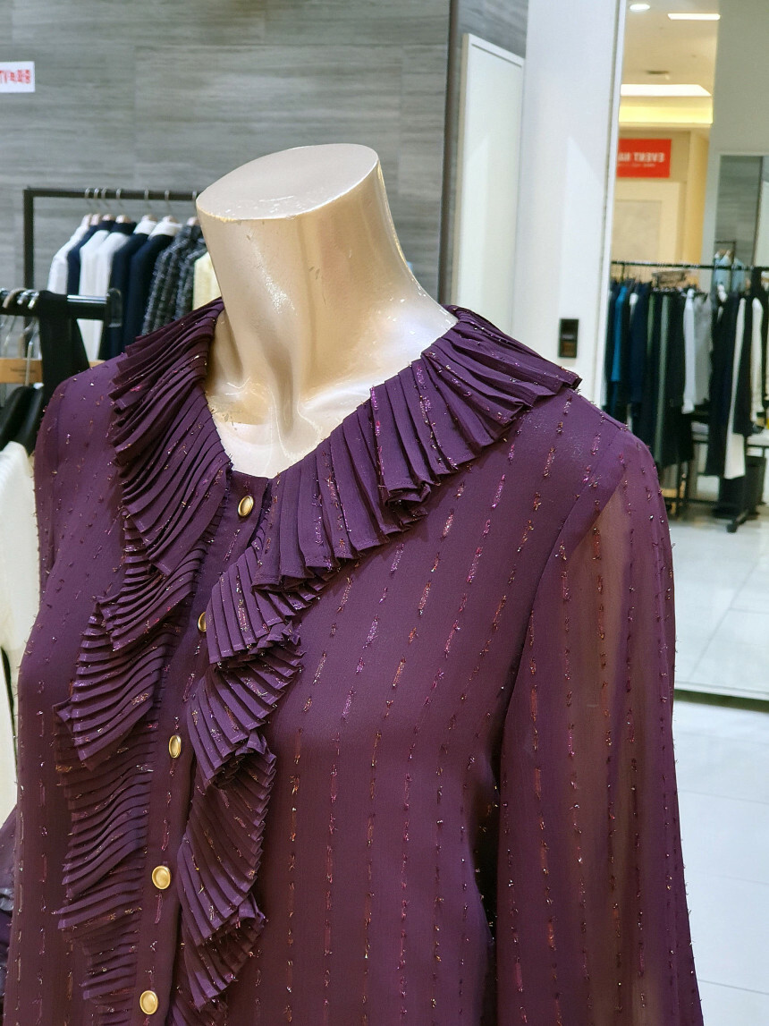플리츠 러플 칼라 디자인이 프런트로 이어지며