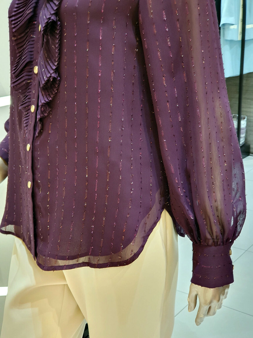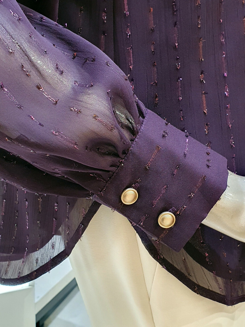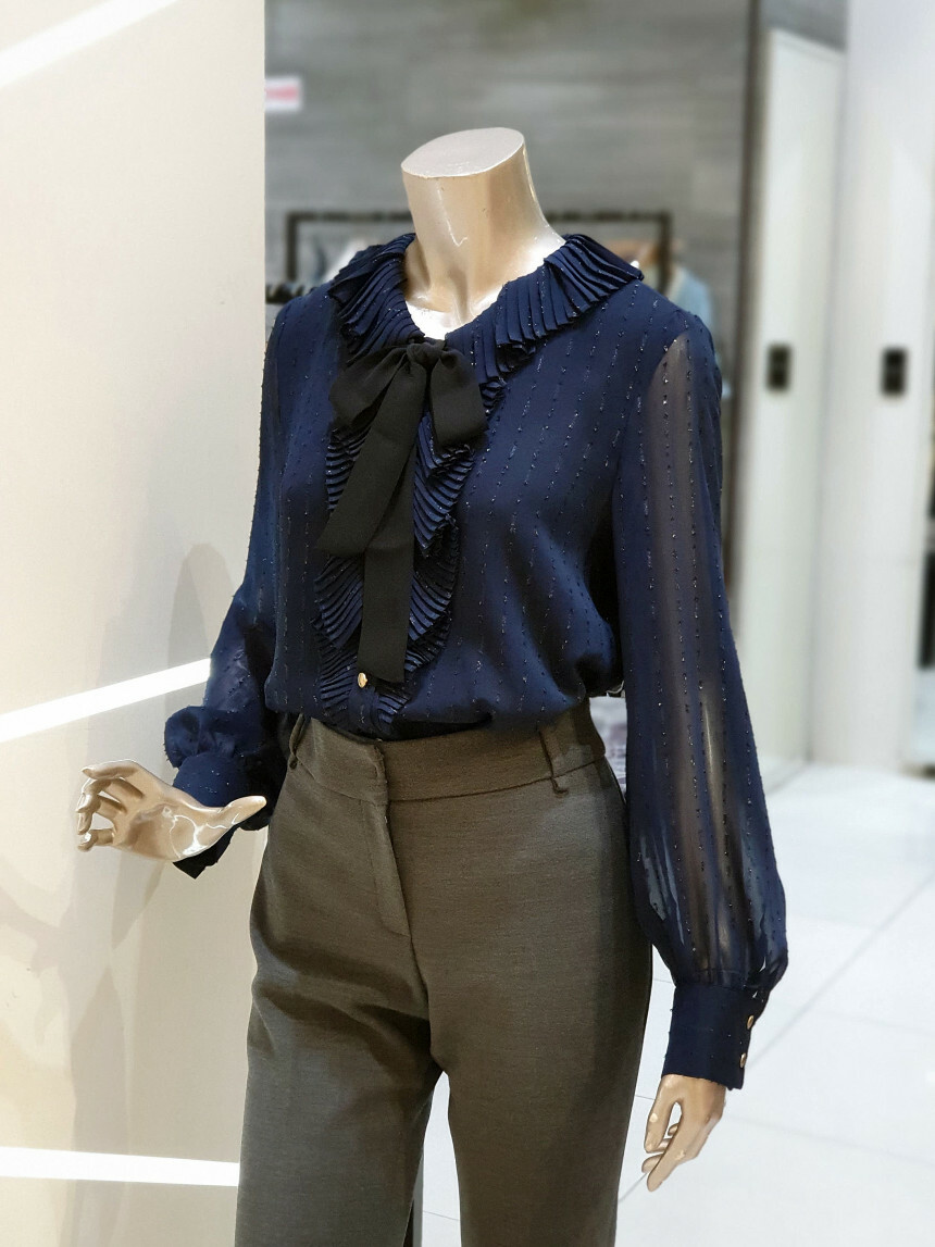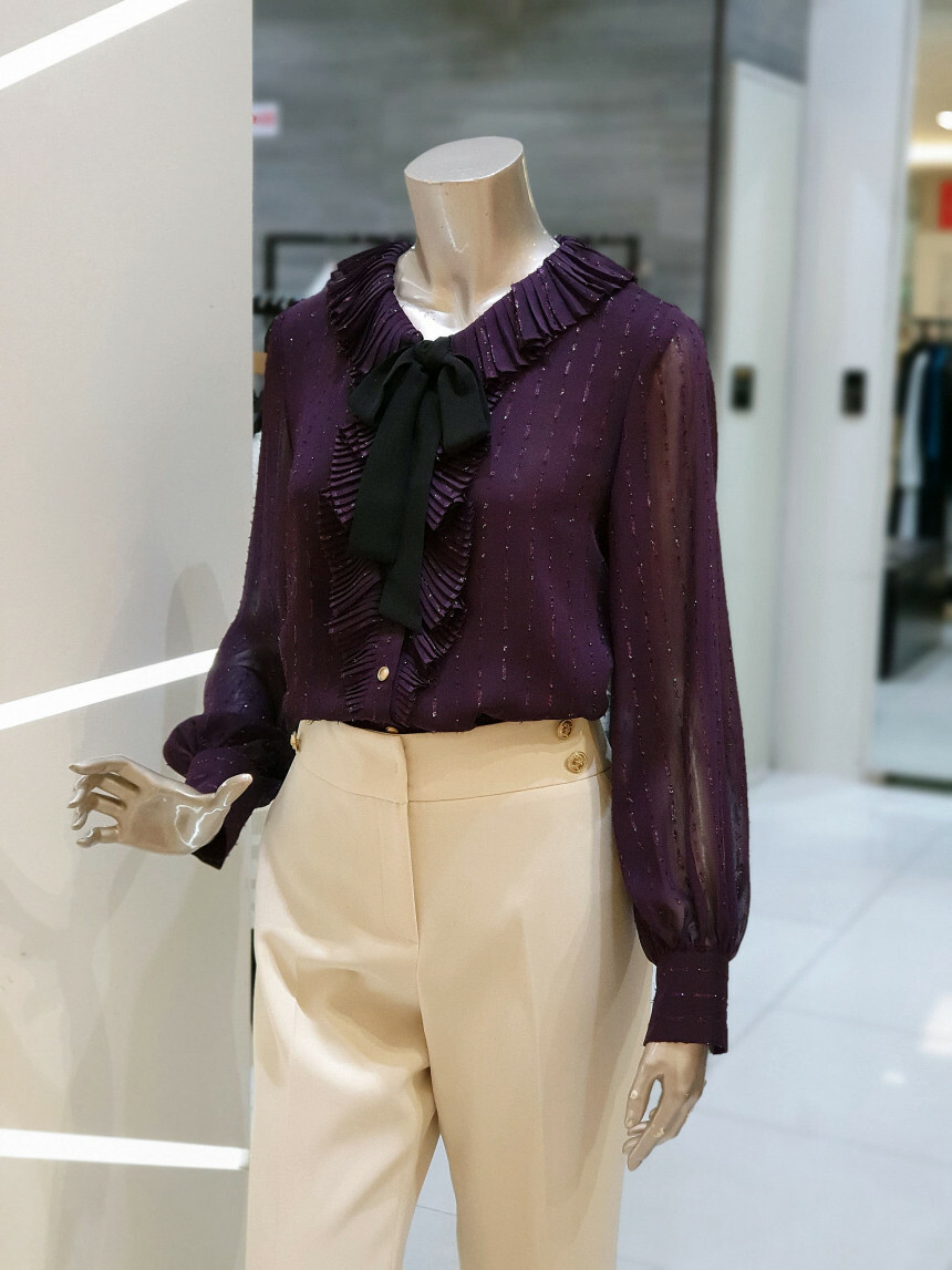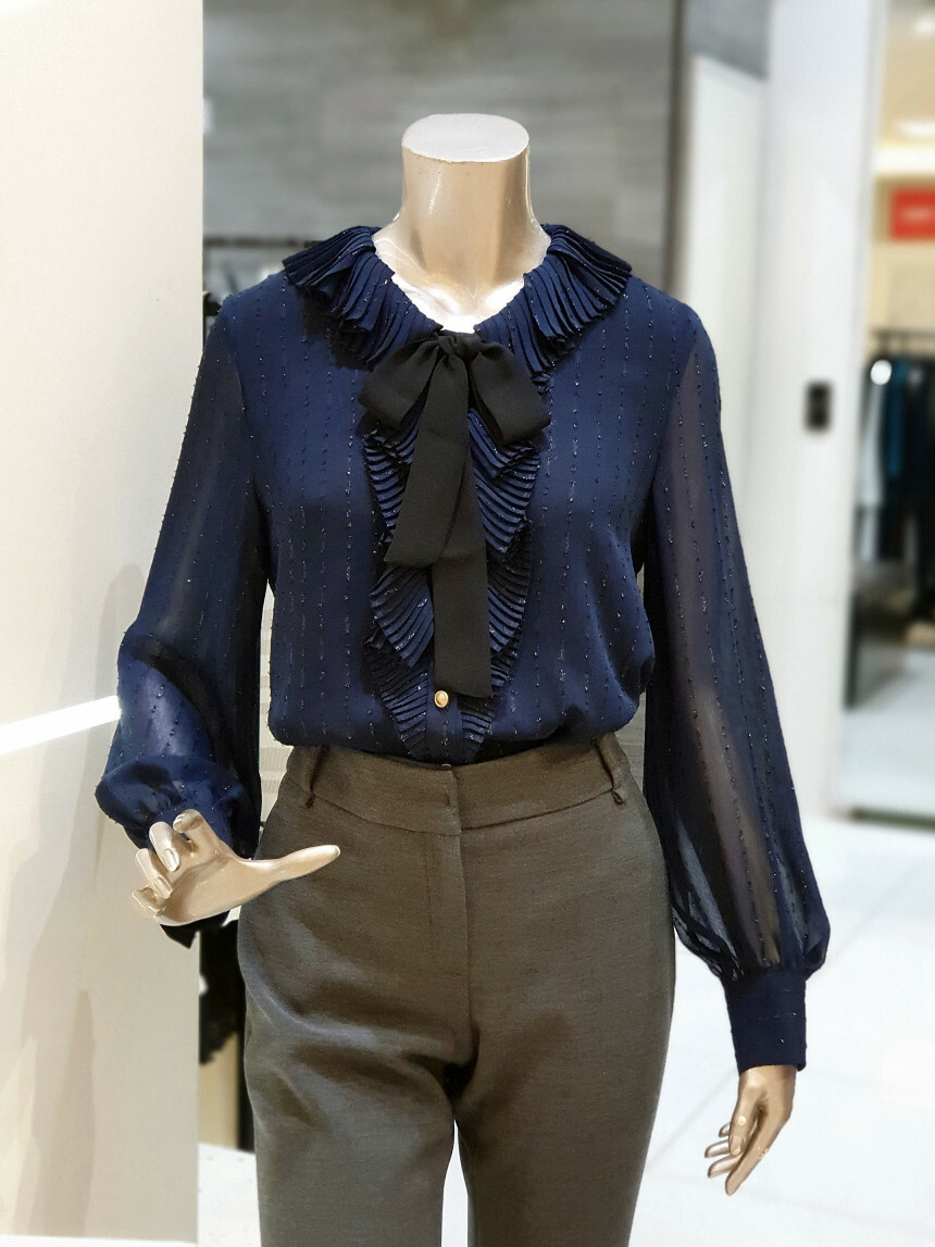 글리터링 장식 디테일로 맵시를 더해주는 페미닌한 무드의 블라우스입니다.