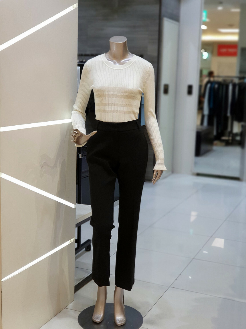 스트레이트 핏으로 레그 라인이 슬림 하고 길어 보이는 슬랙스입니다.