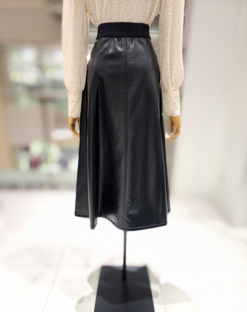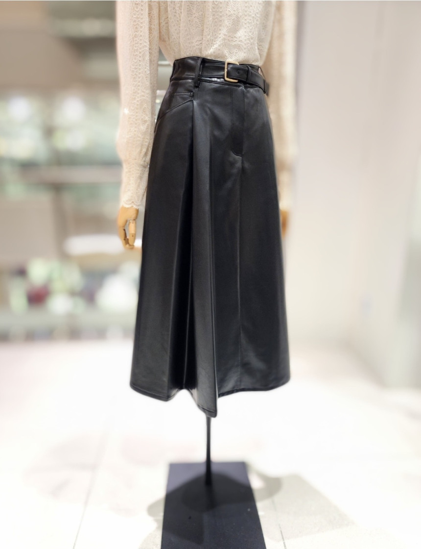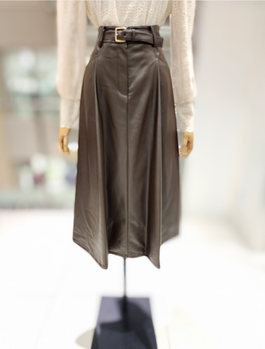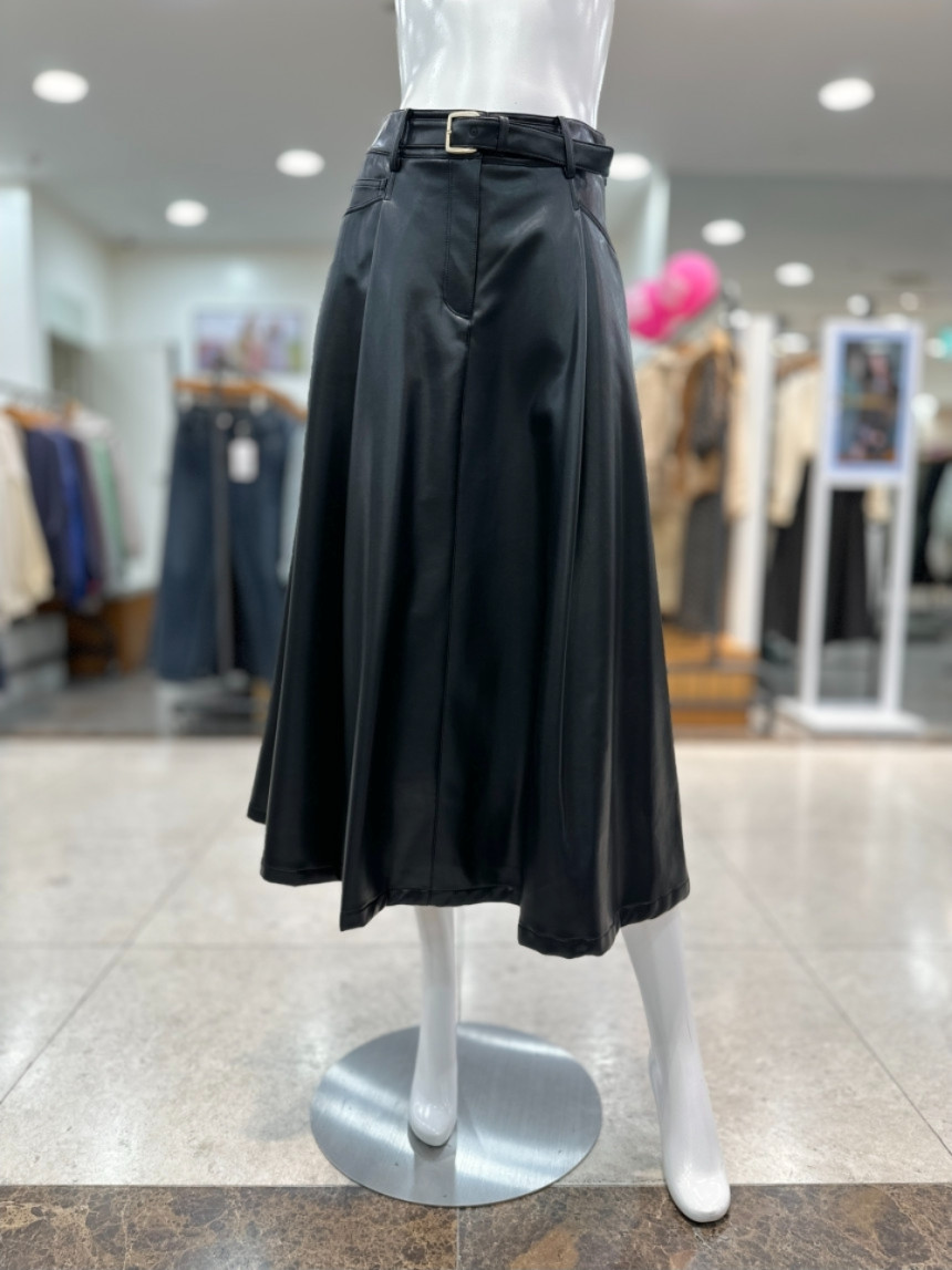 뒷밴딩 벨트 포인 레더 스커트 24AGS38