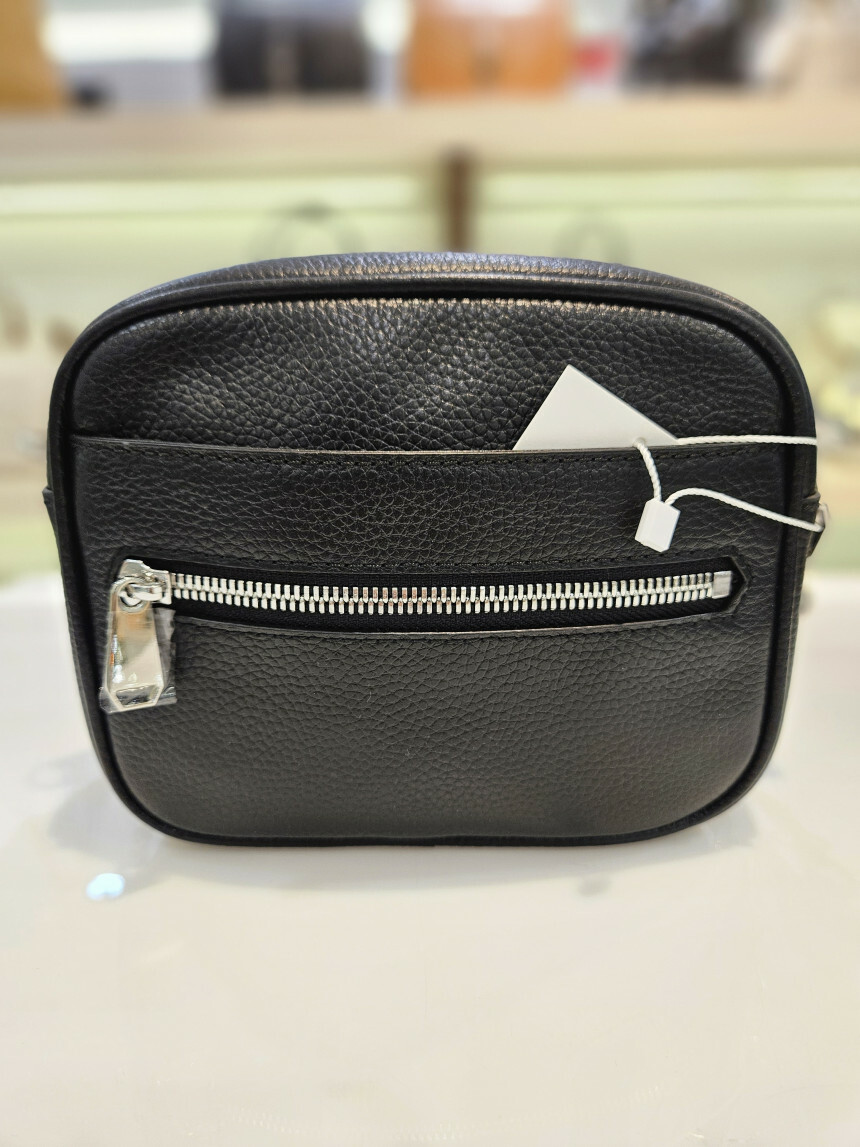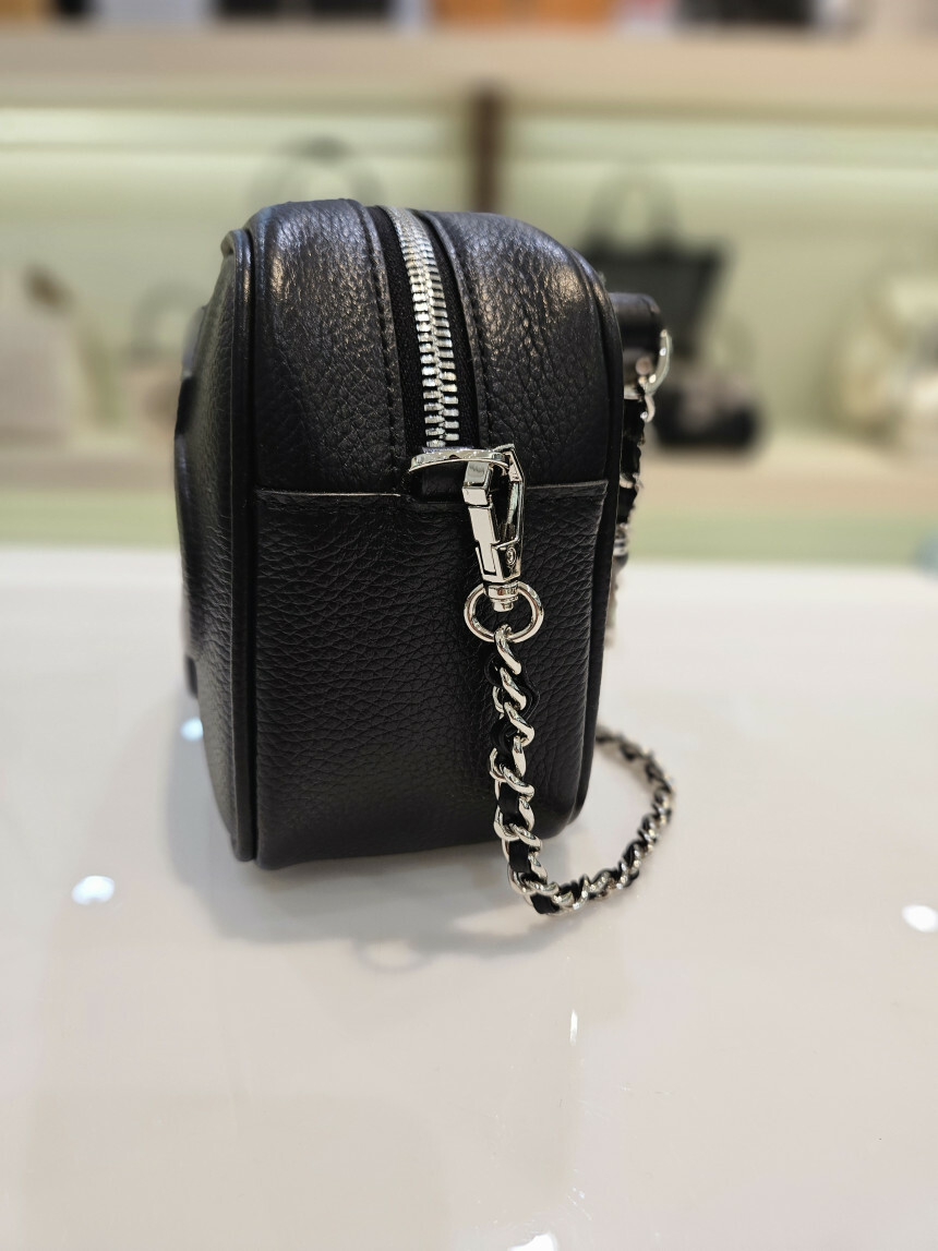 가죽 웨빙 처리된 체일 숄더 끈이 컴팩트한 사이즈의 크로스바디백에 포인트가되는 스탈일입니다