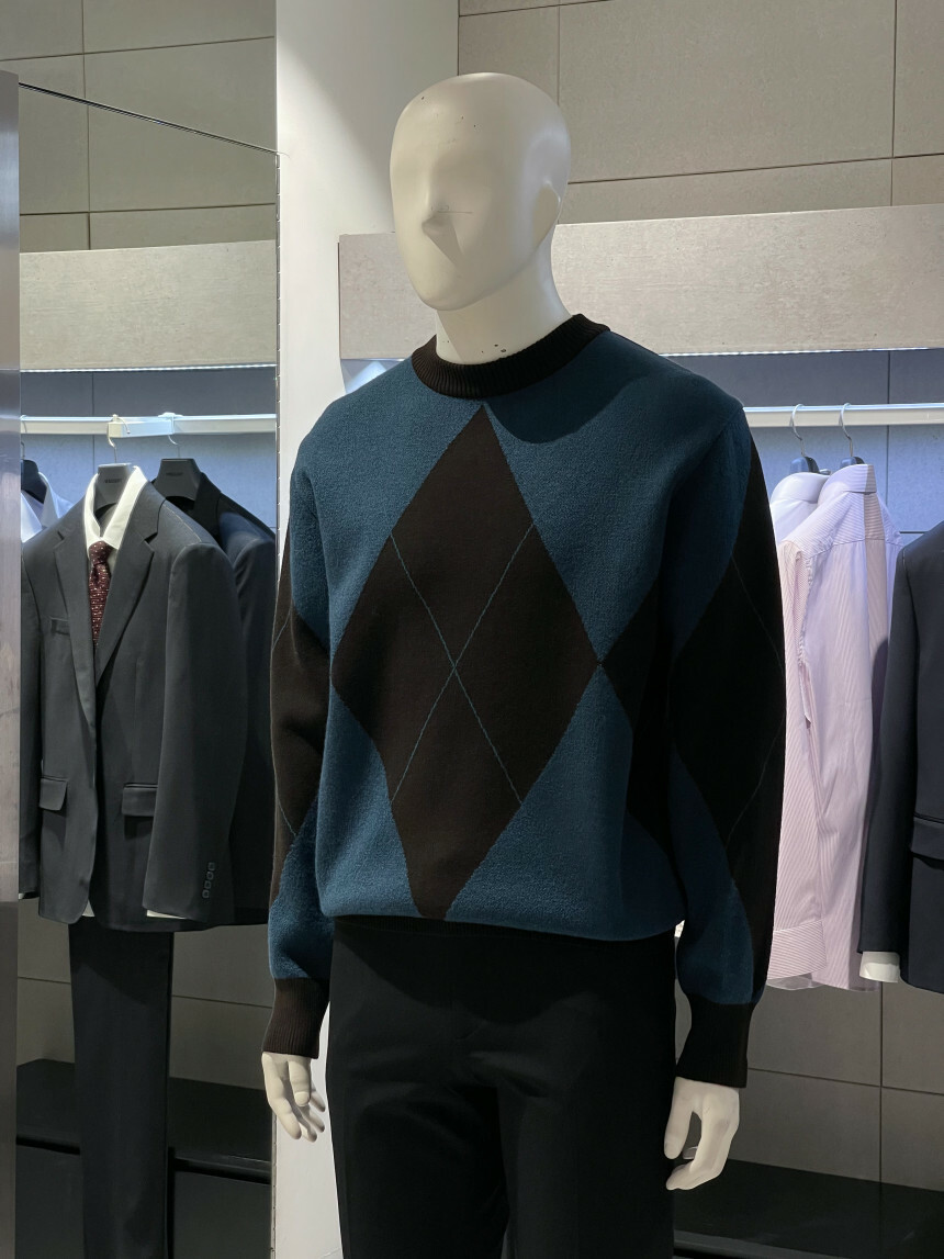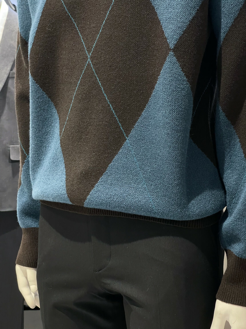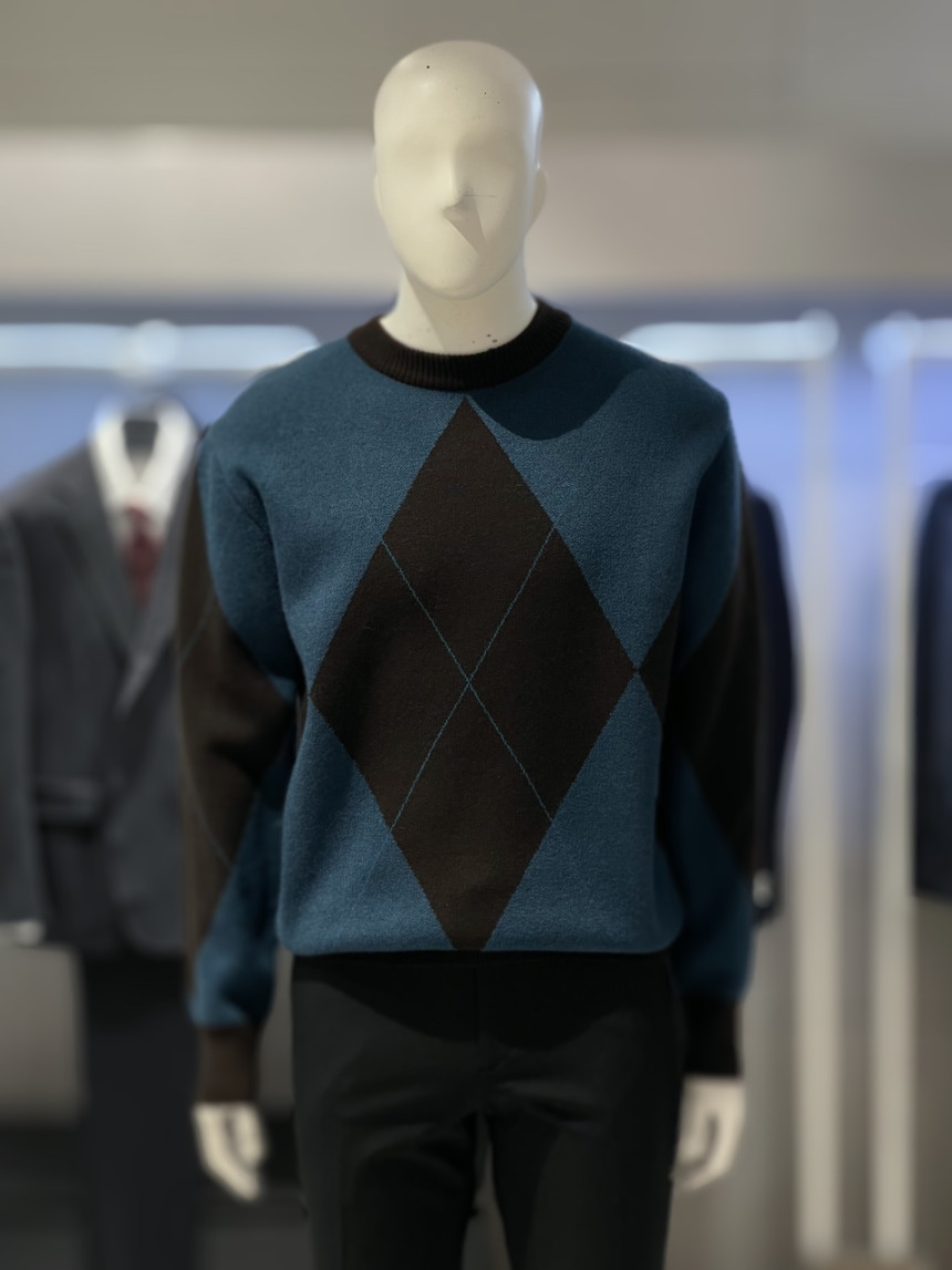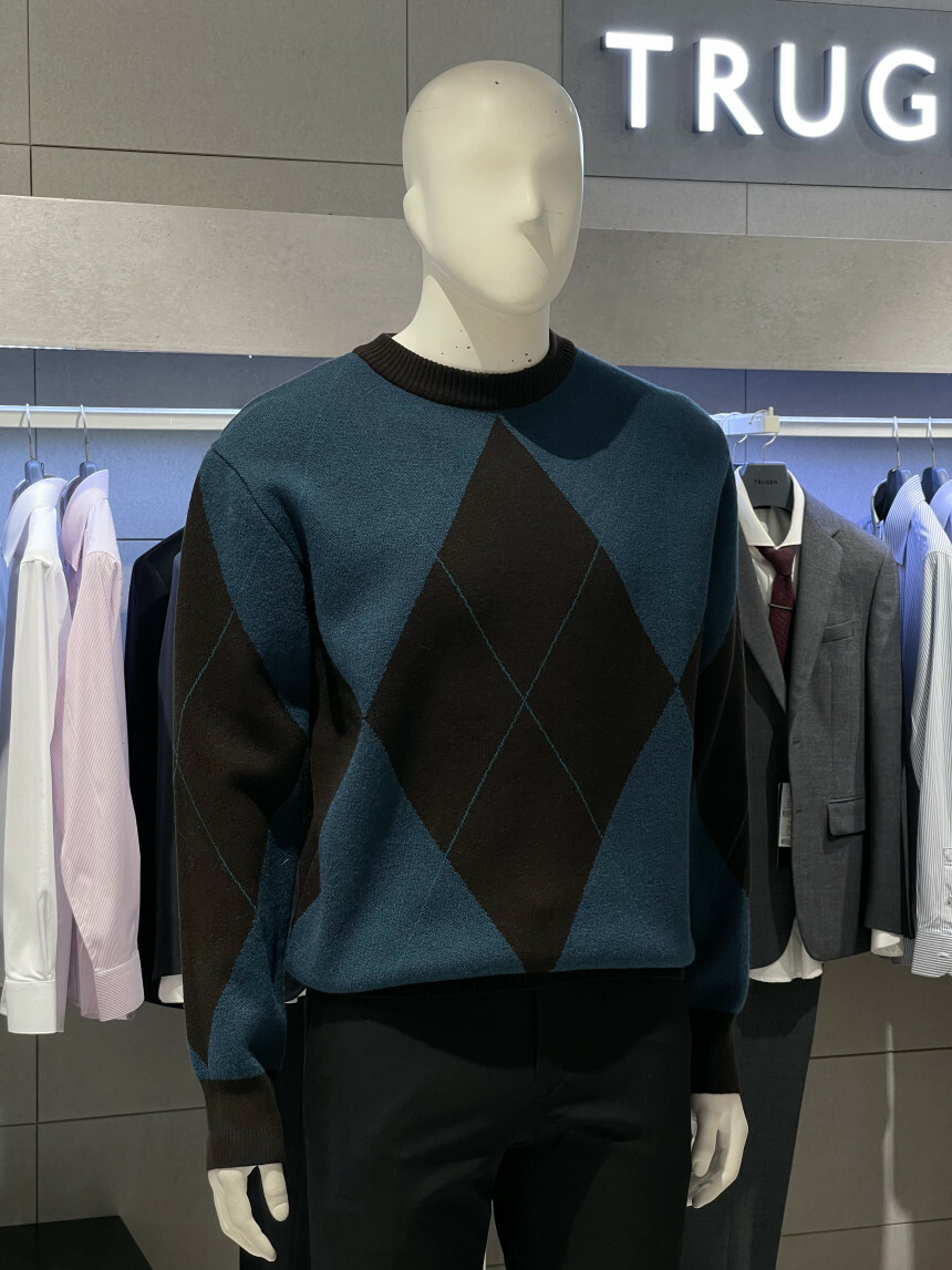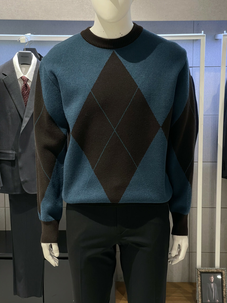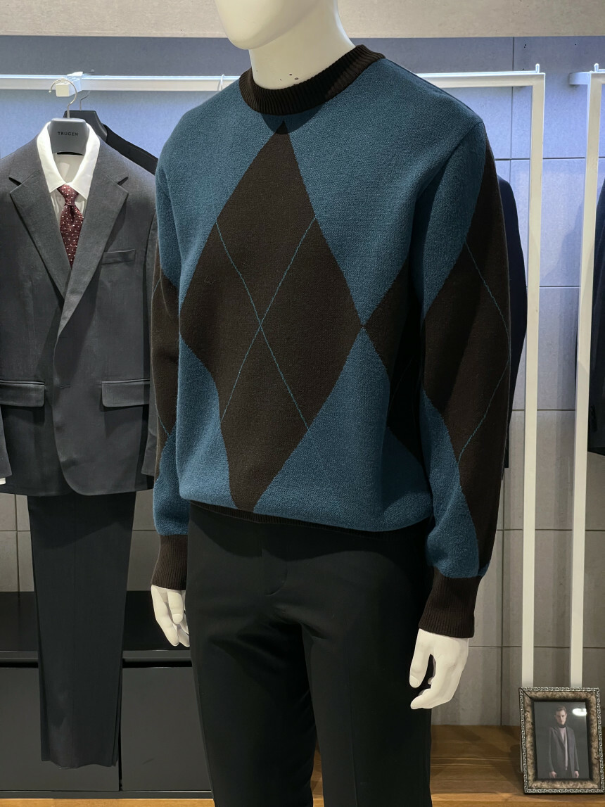 캐주얼한 빅 아가일 패턴이 룩에 포인트가 되는 스웨터입니다.