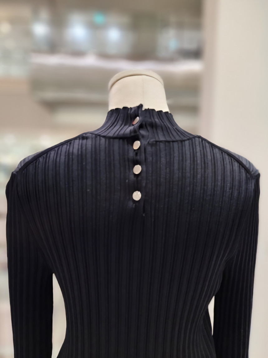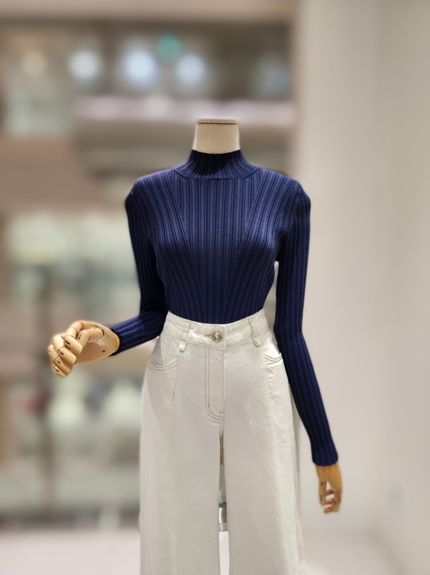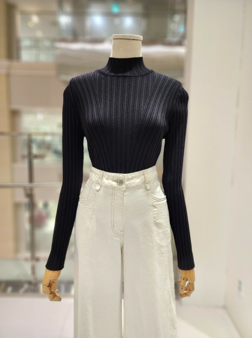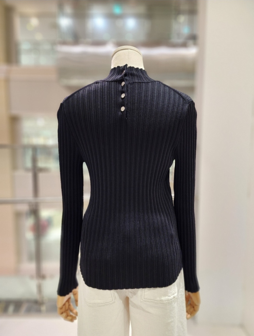 슬림핏으로 신축성있는 넥뒷면 버튼포인트 니트티입니다.