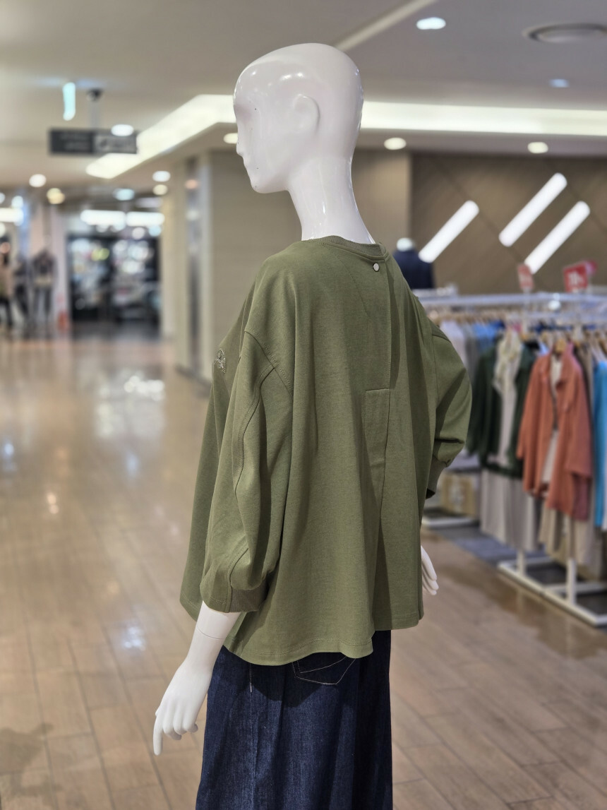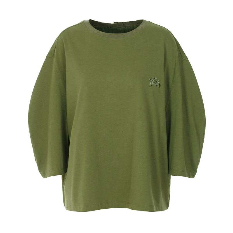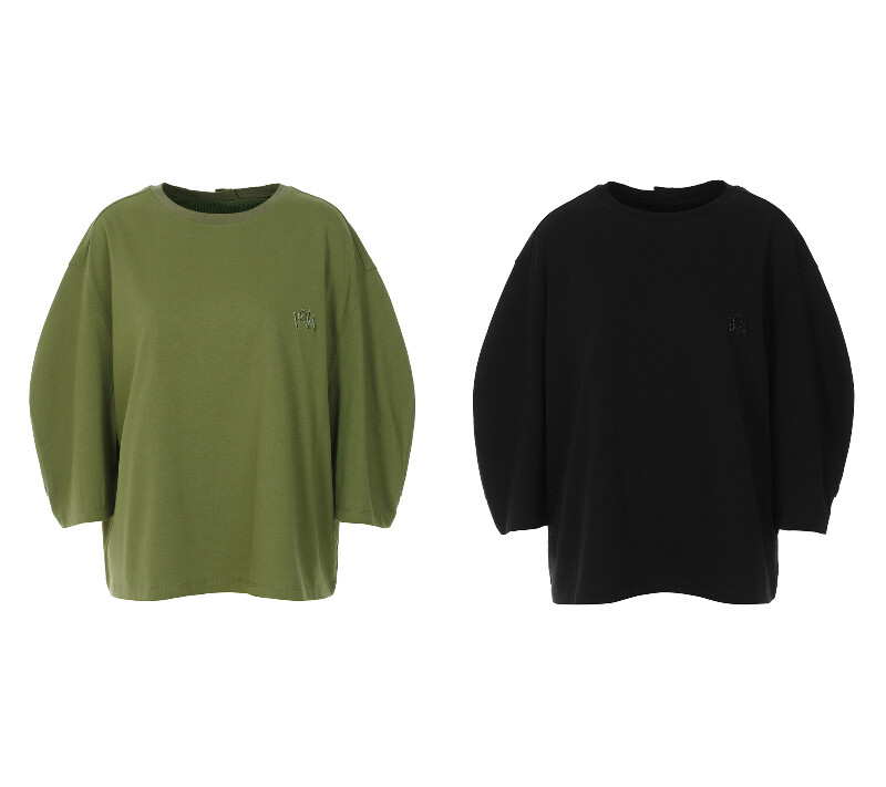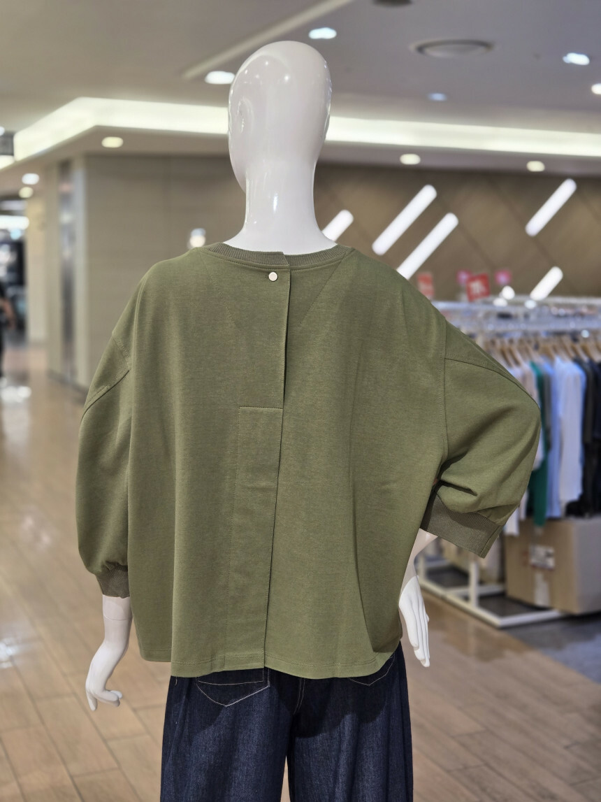라운드넥에 벌룸감있는 소매통 뒷면 디테일을준