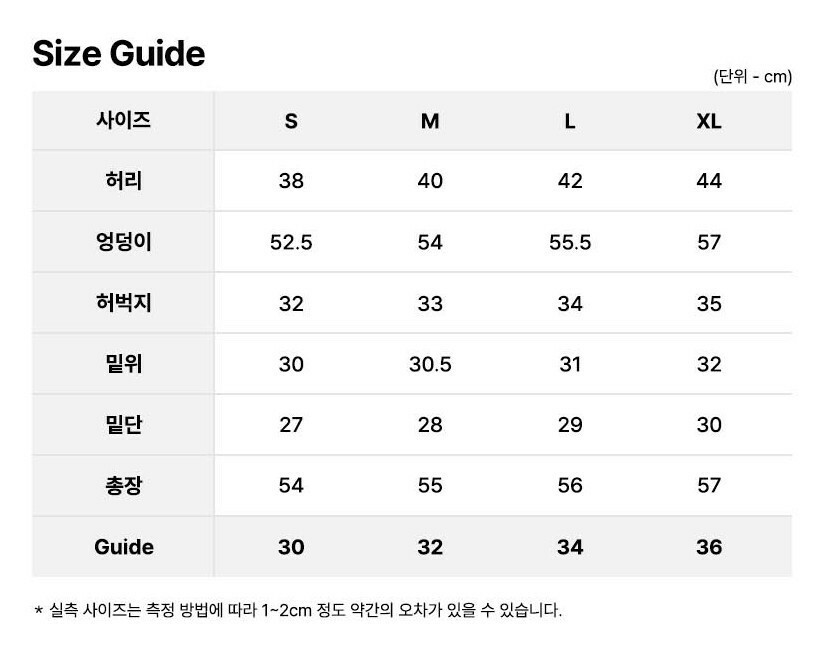사이즈 : 30(S),32(M),34(L),36(XL)