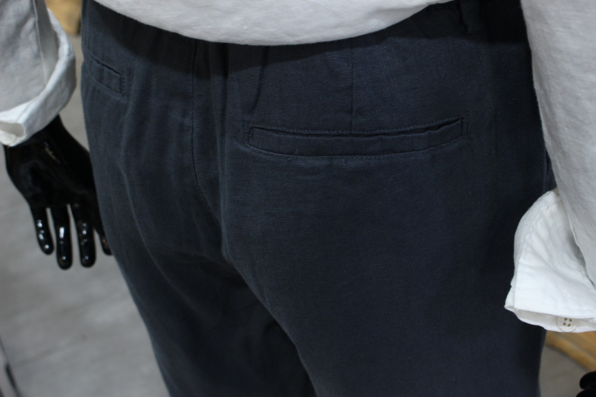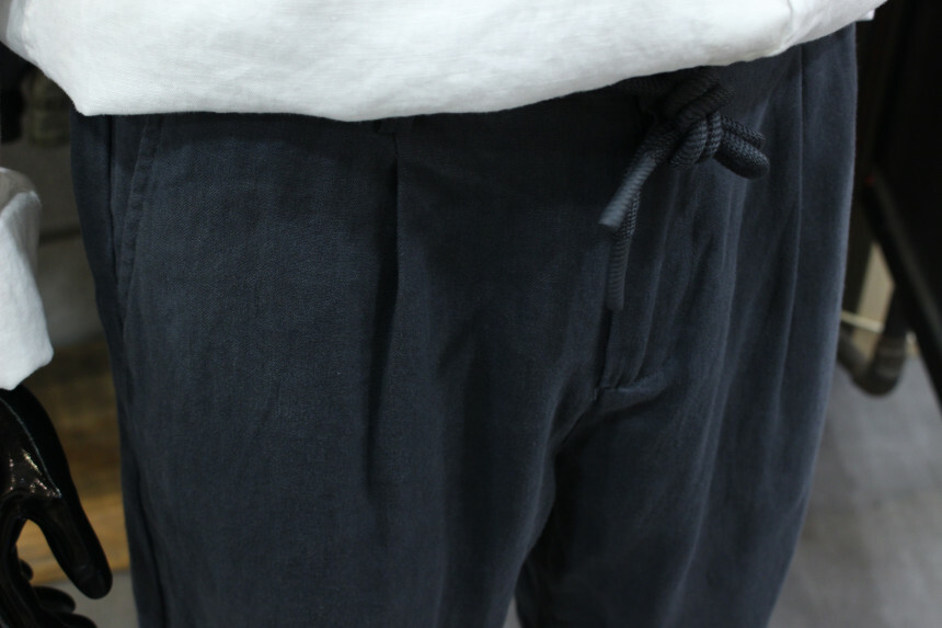 쫀쫀한 허리밴딩에 스트링으로 조절이 가능하여 원턱을 넣어 실용적이며 멋스러운 연출이 가능합니다