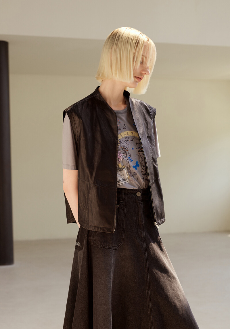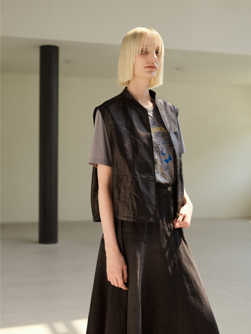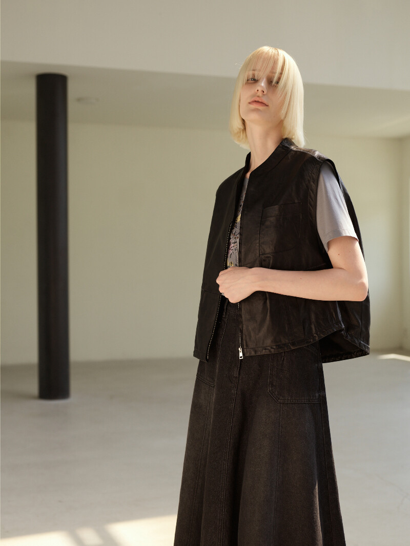 소프트한 베지터블 표면이 깨끗한 고급스런 양가죽 베스트