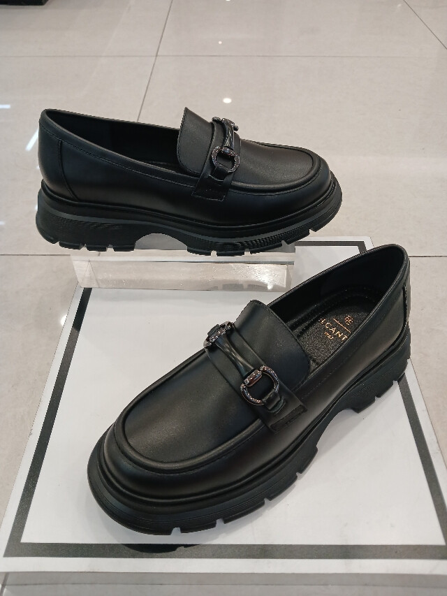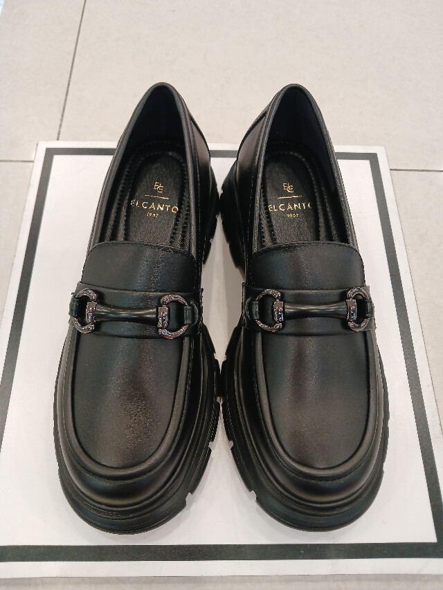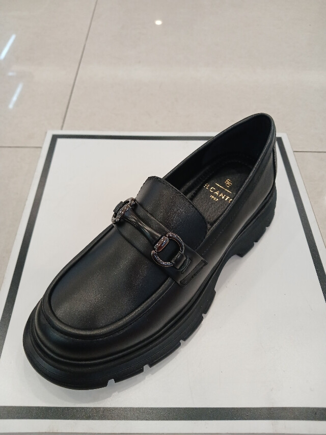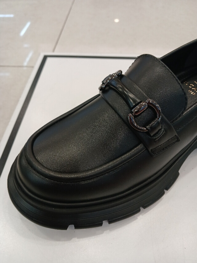 굽높이 약4|*|5cm의 높이에 천연 소가죽소재를 사용하여 제작된 여성 청키로퍼입니다