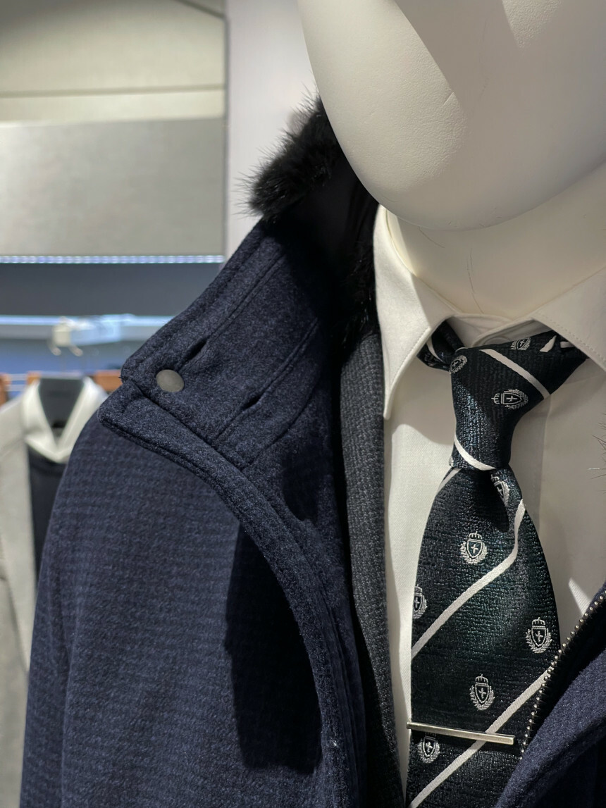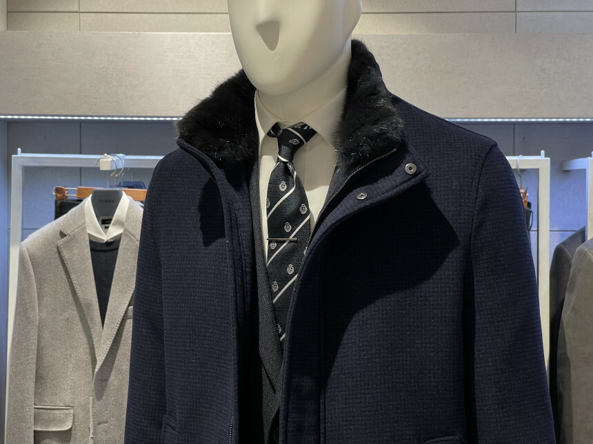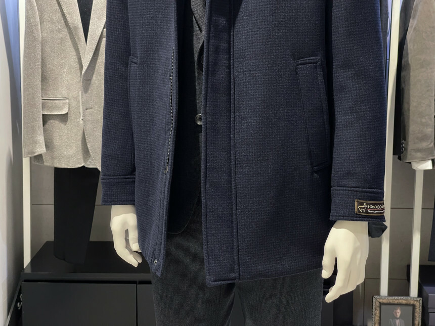 베이지,그레이,브라운 믹스 잔헤링본 소재가 고급스러운 코트입니다