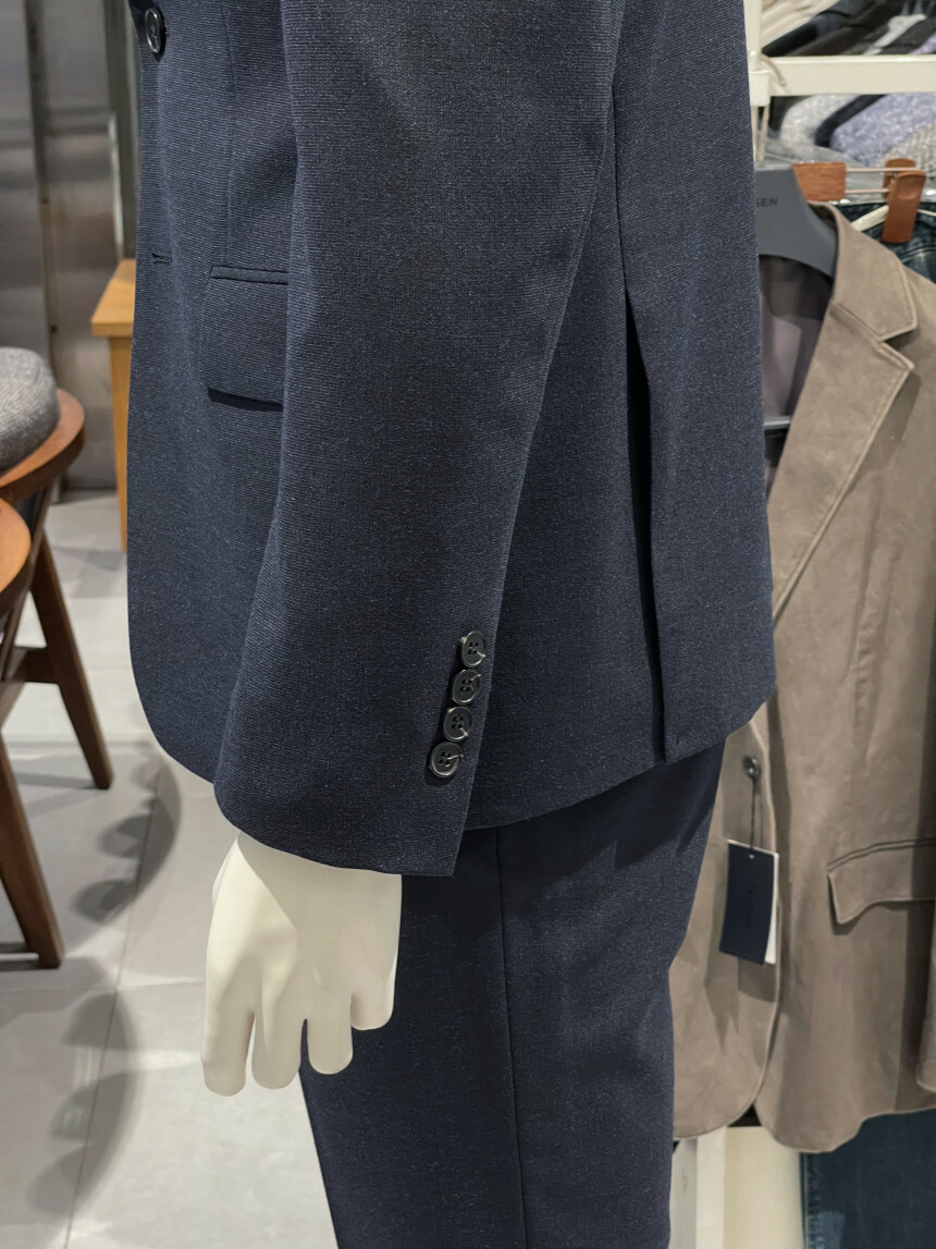 · 투톤 짜임에 크리스피노사의 컬러감을 더하여 트렌디한 데님라이크 수트