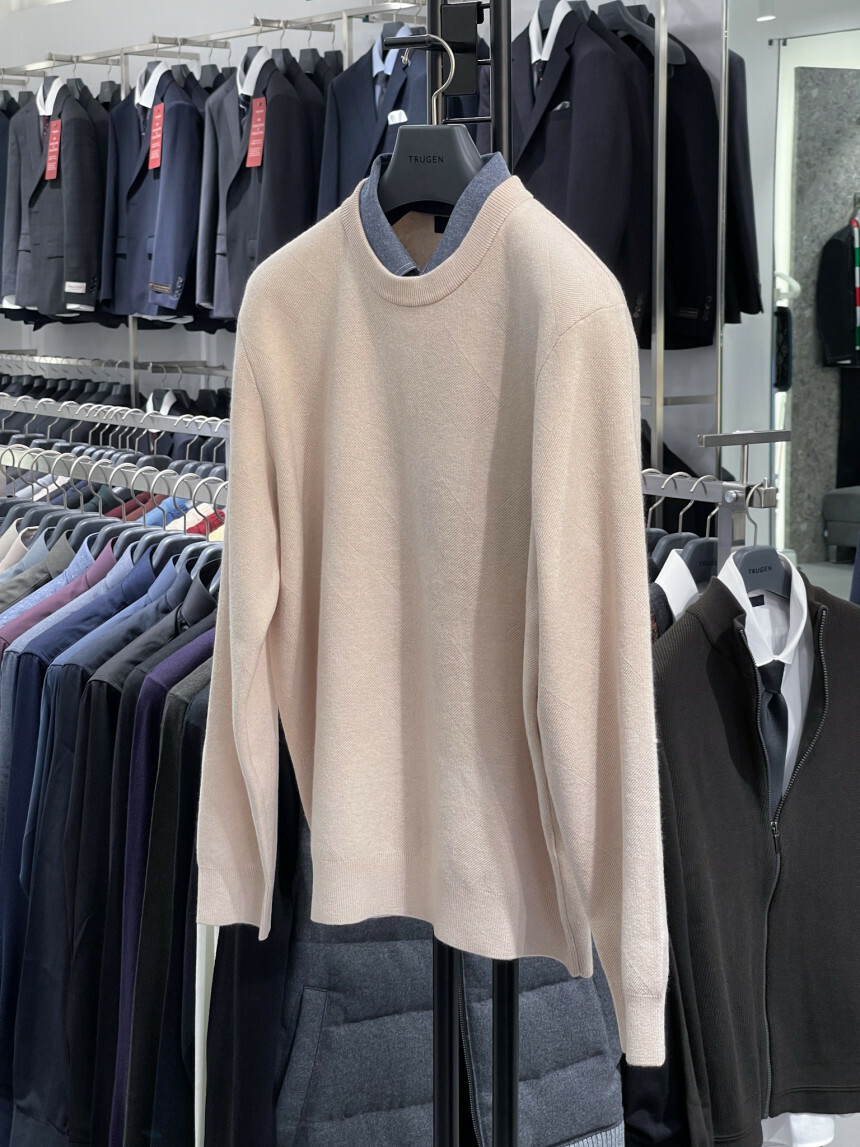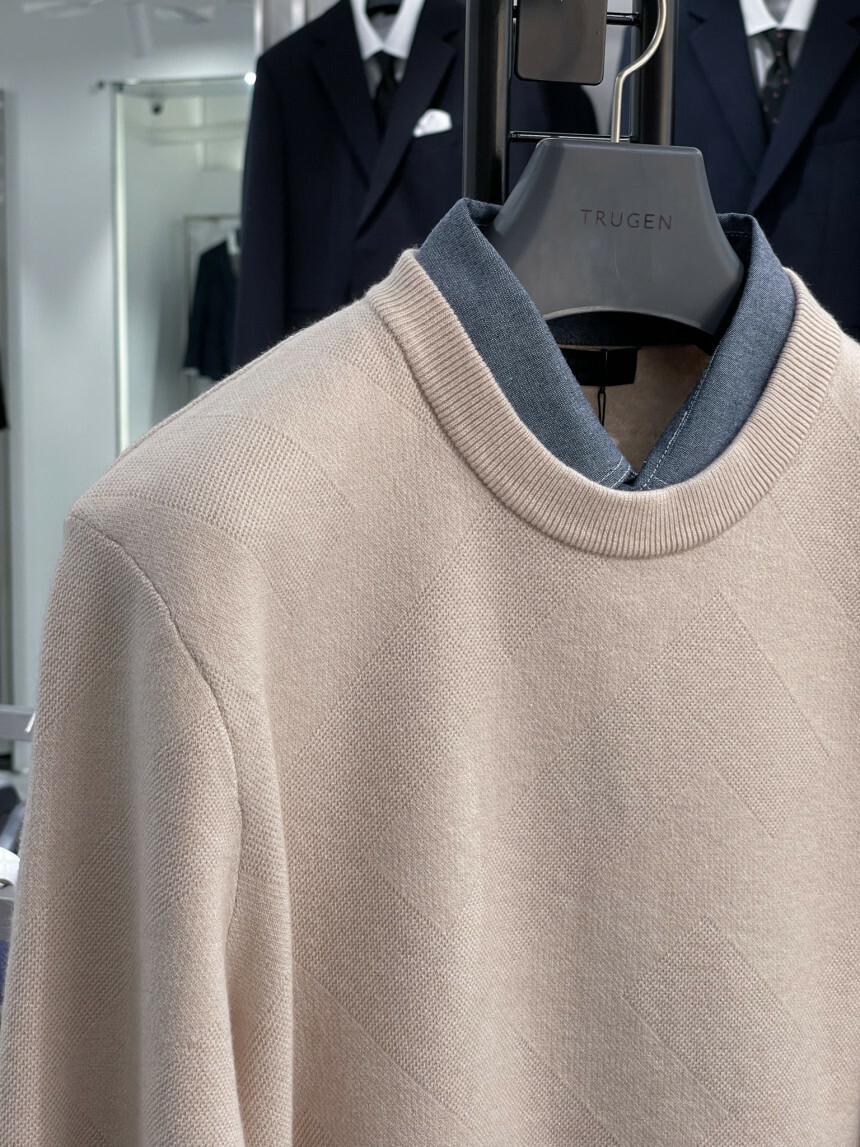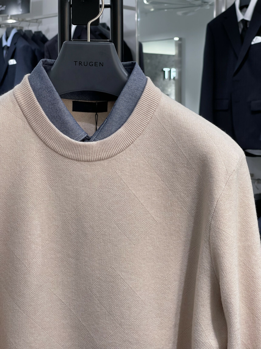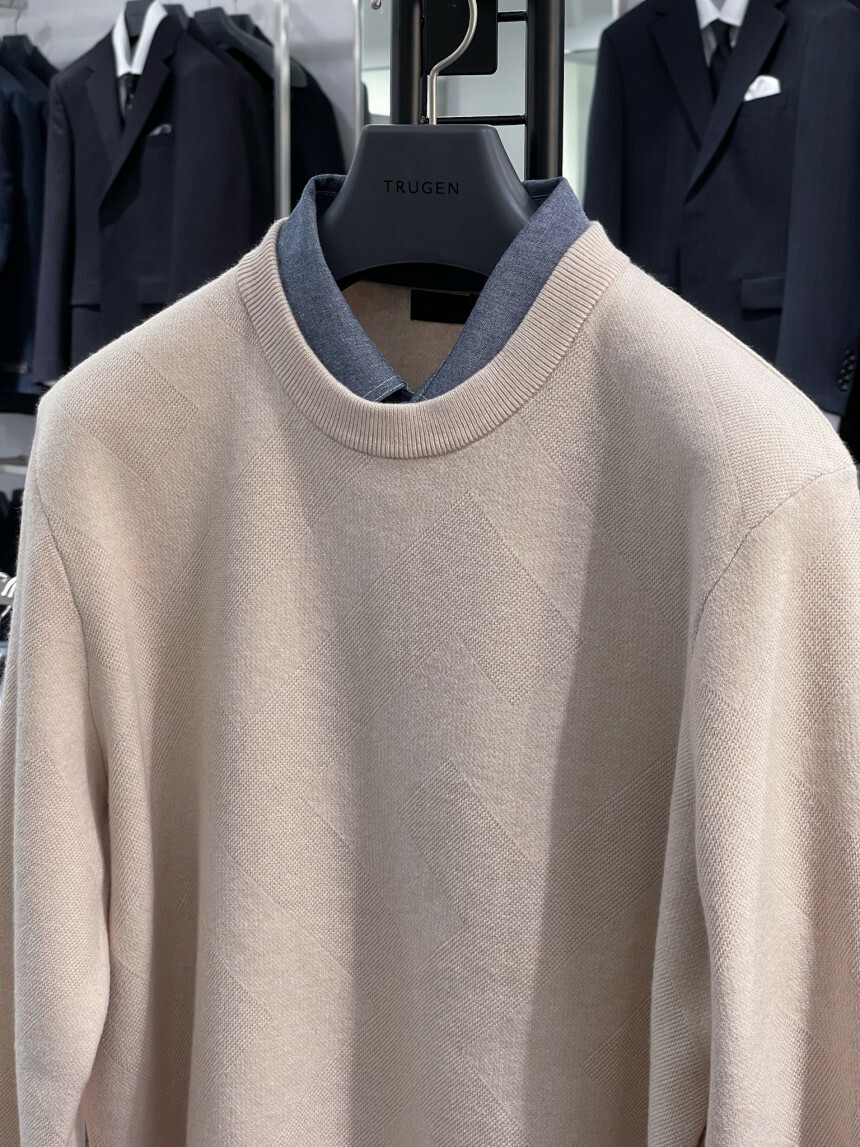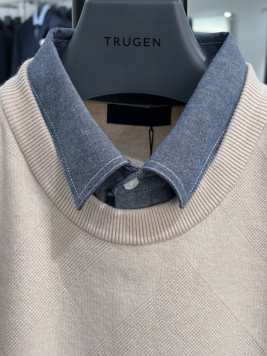 · 셔츠를 겹쳐 넣은 디자인의 셔츠레이어드 니트 제품