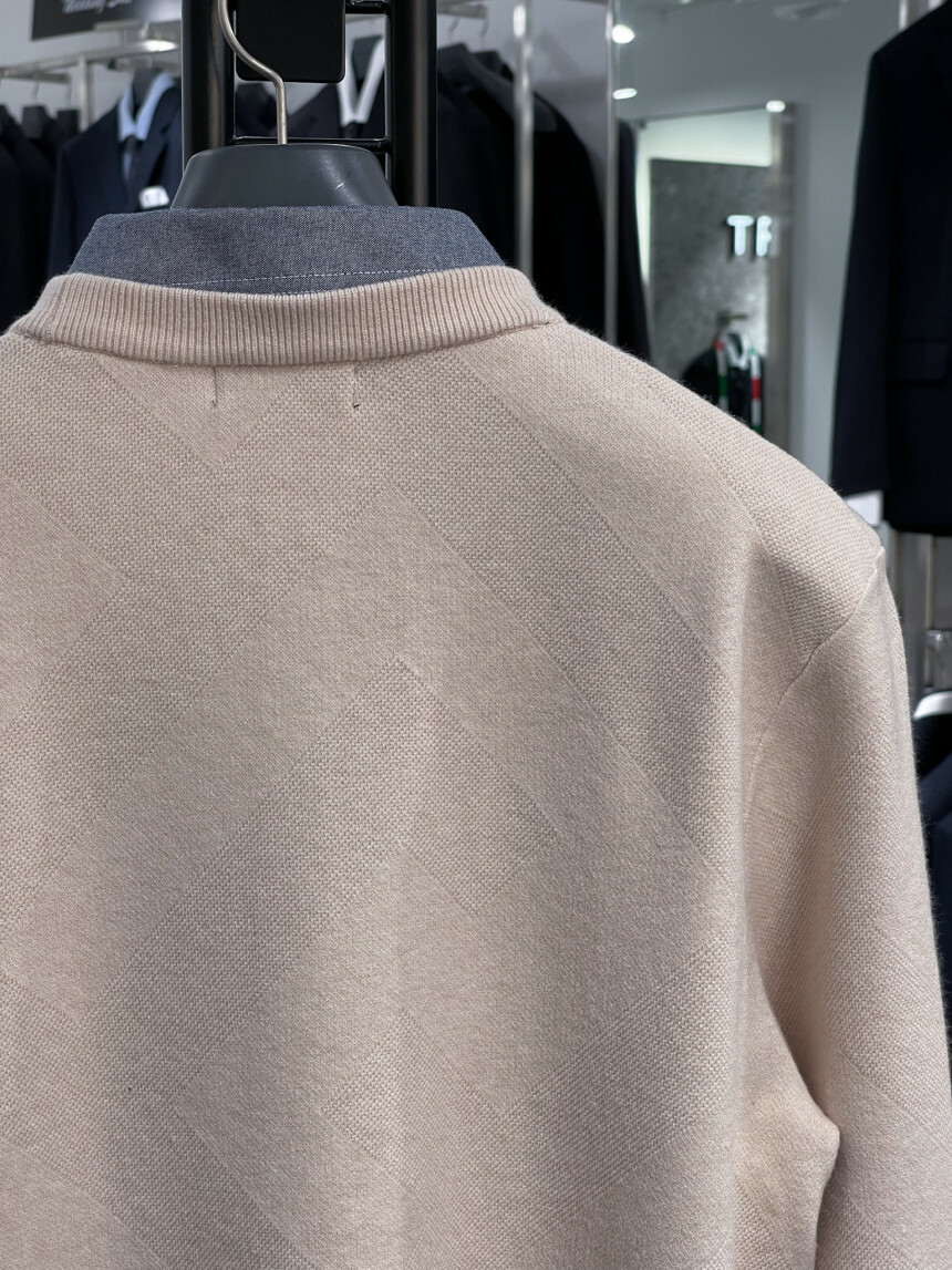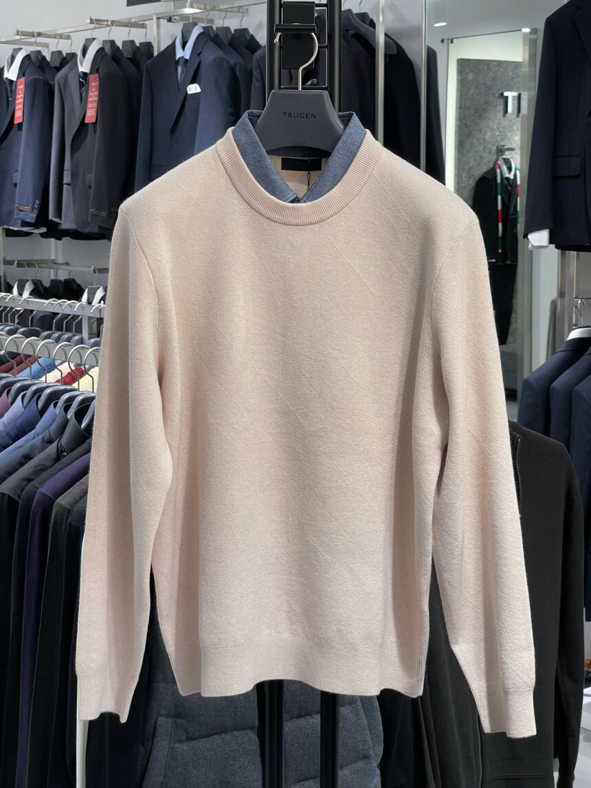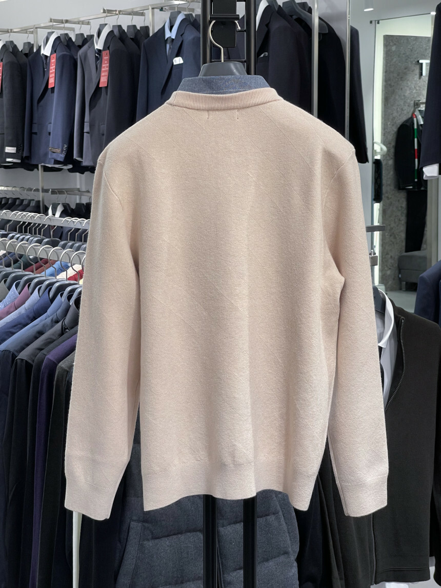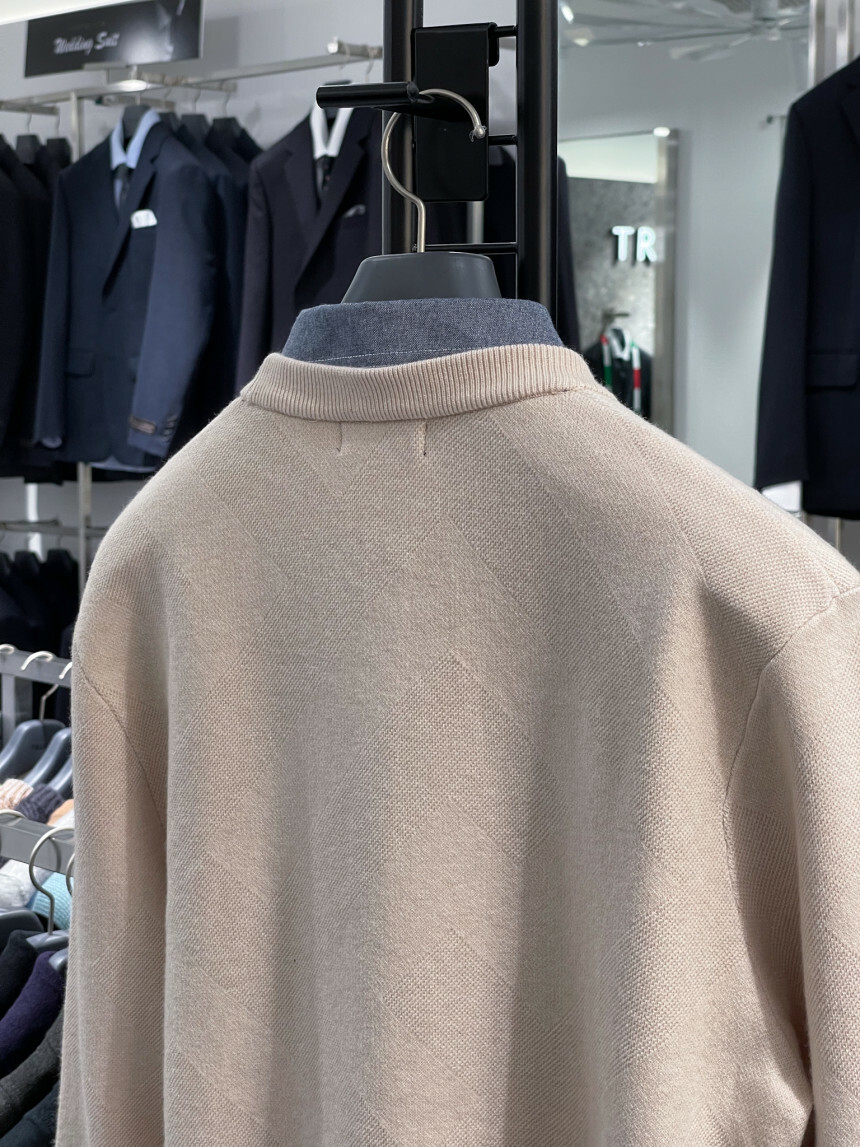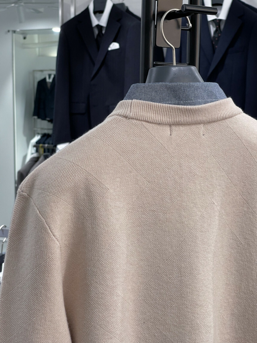 · 셔츠를 겹쳐 넣은 디자인의 셔츠레이어드 니트 제품
