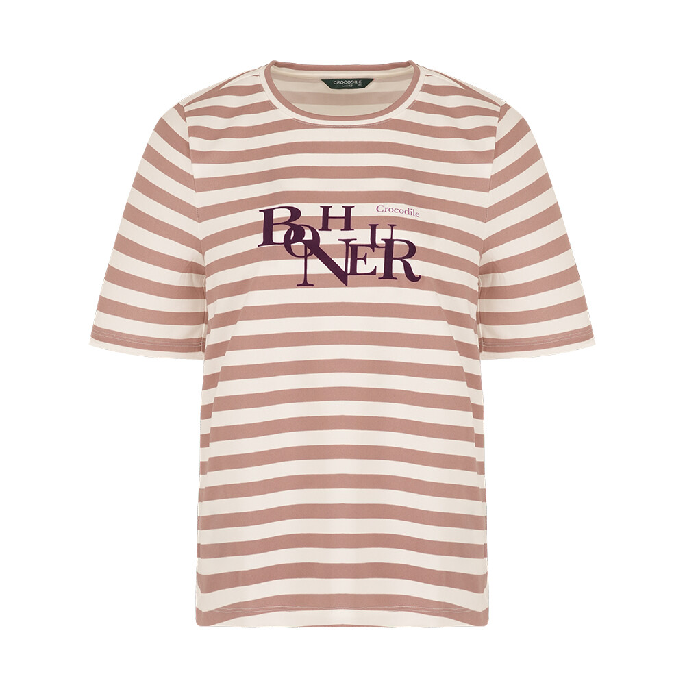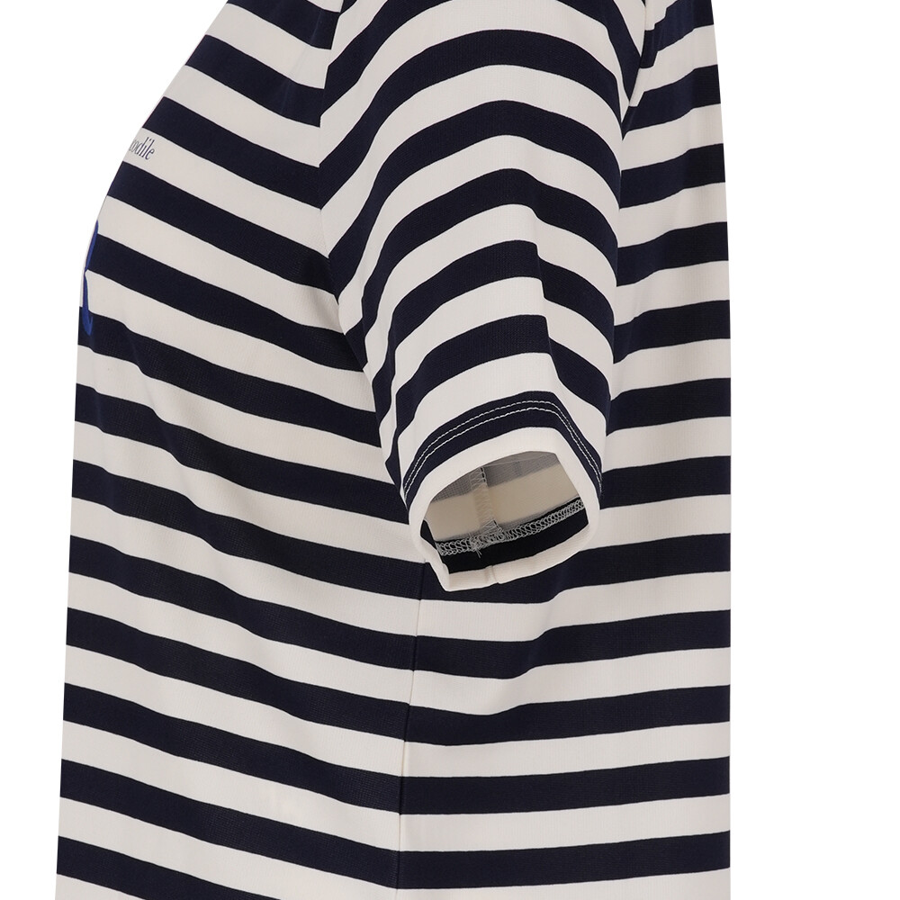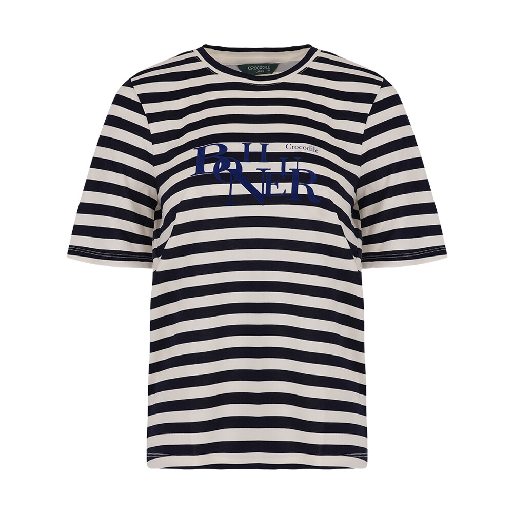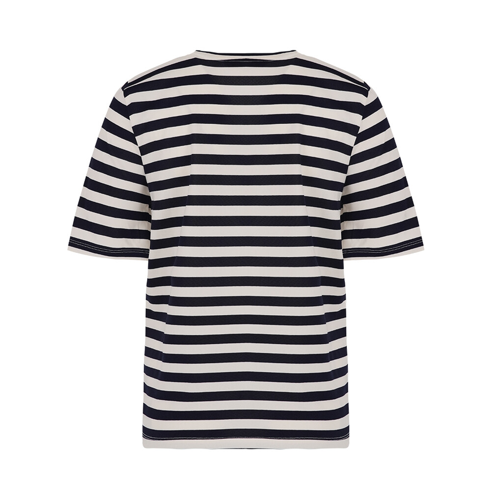 단도 스트라이프로 경쾌하고 젋은 코디에 용이한 아이템.앞판의 레터링이 포인트인 아이템