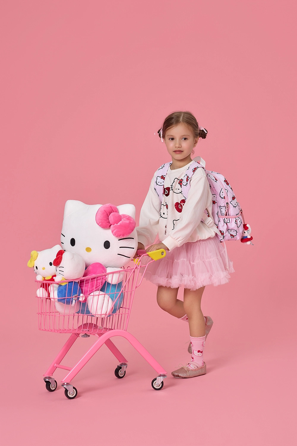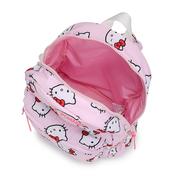 헬로키티의 얼굴 패턴이 그려진 헬로키티 패딩 백팩입니다.