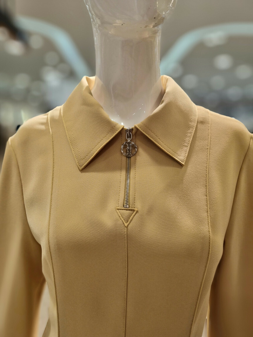 앞면 집언오픈넥에 뒷면 지퍼클로징되는 아주 깔끔한 찰랑찰랑소재