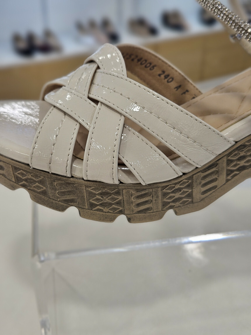 독특한 통굽을 사용하여 기존의 샌들과는 차별화된 디자인을 자랑합니다