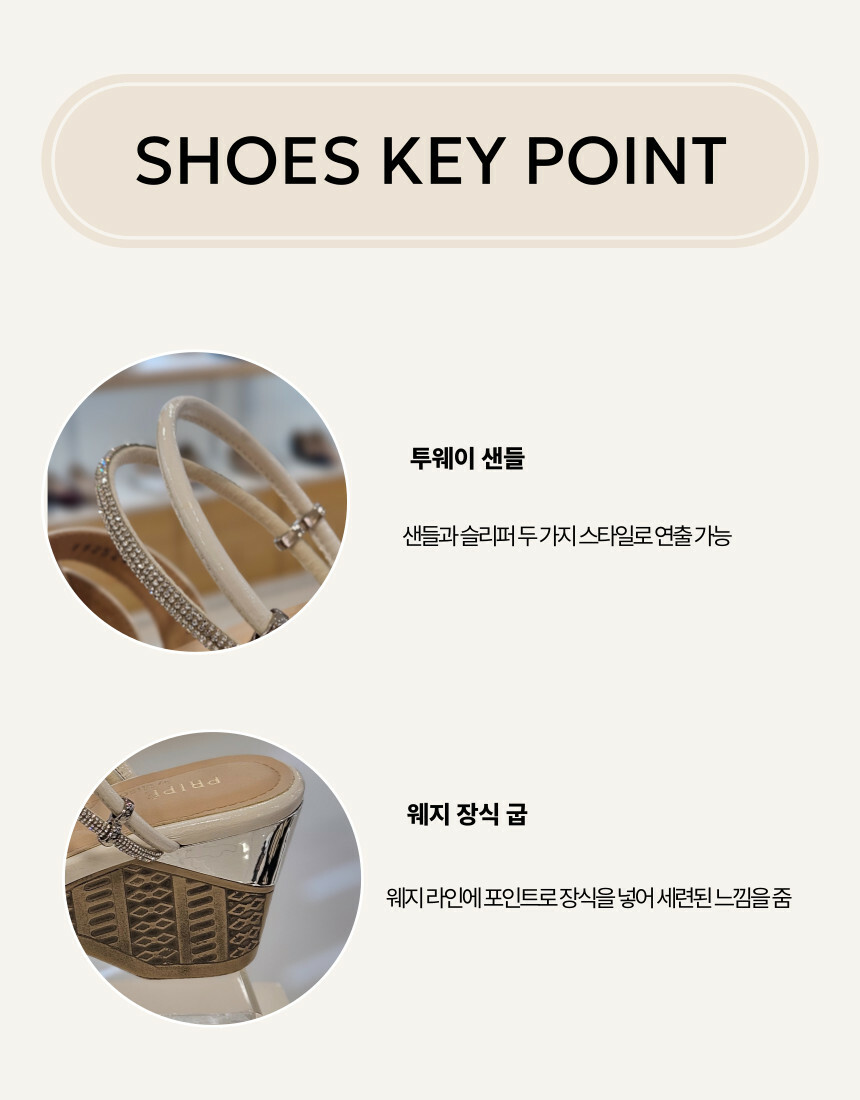 투웨이 샌들로 의상에 따라 샌들과 슬리퍼 두 가지 디자인으로 연출이 가능합니다